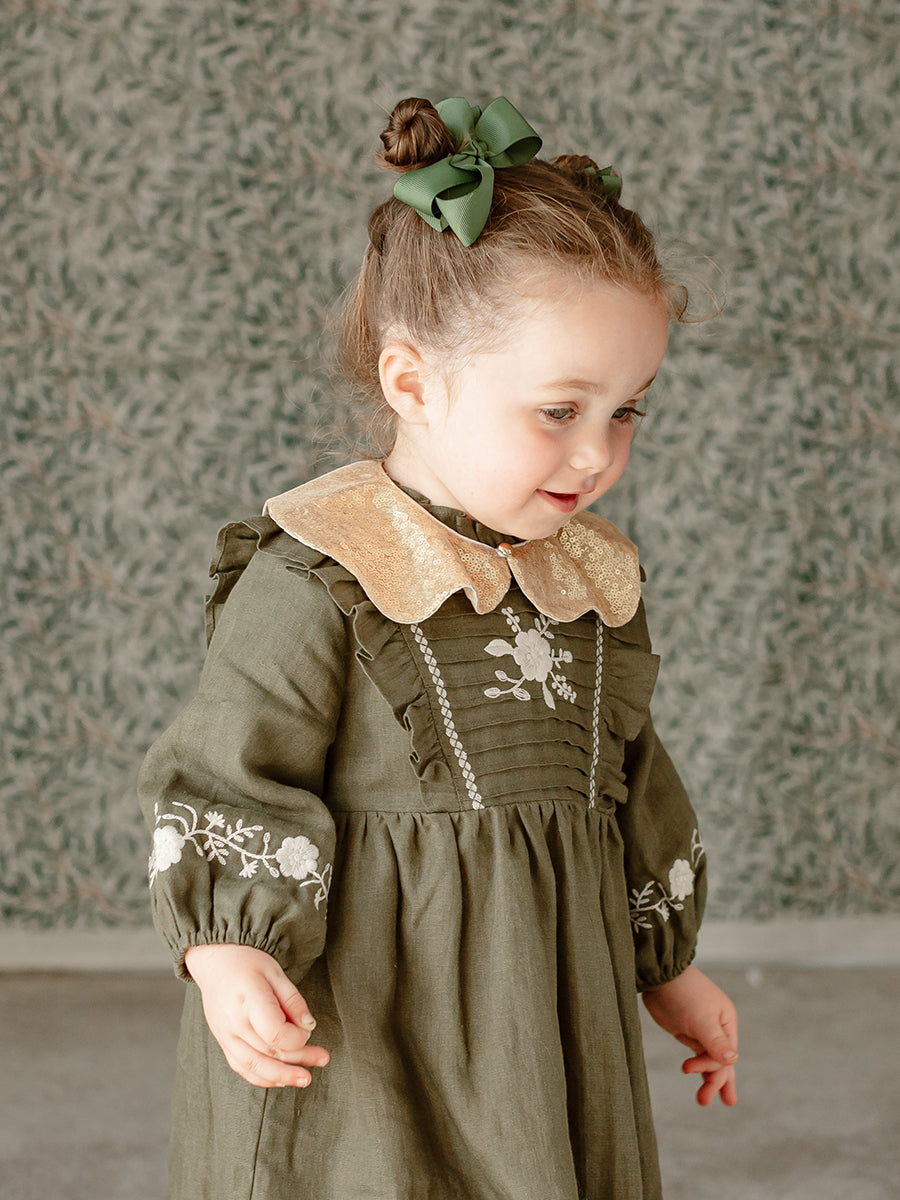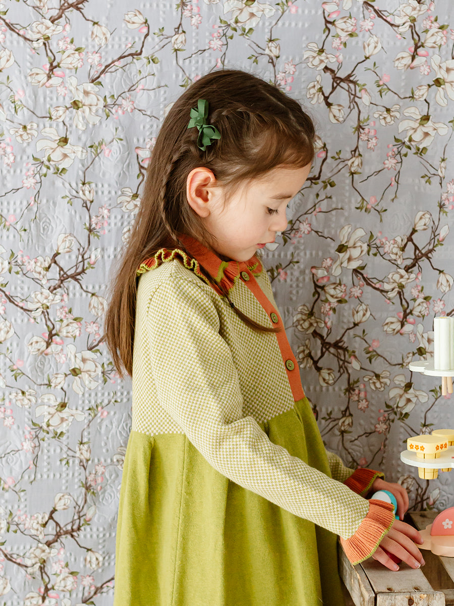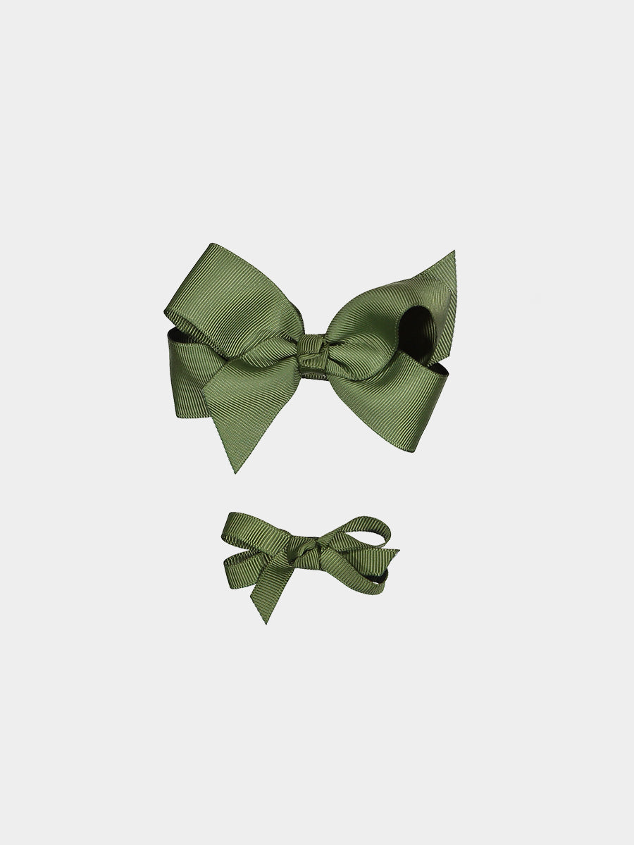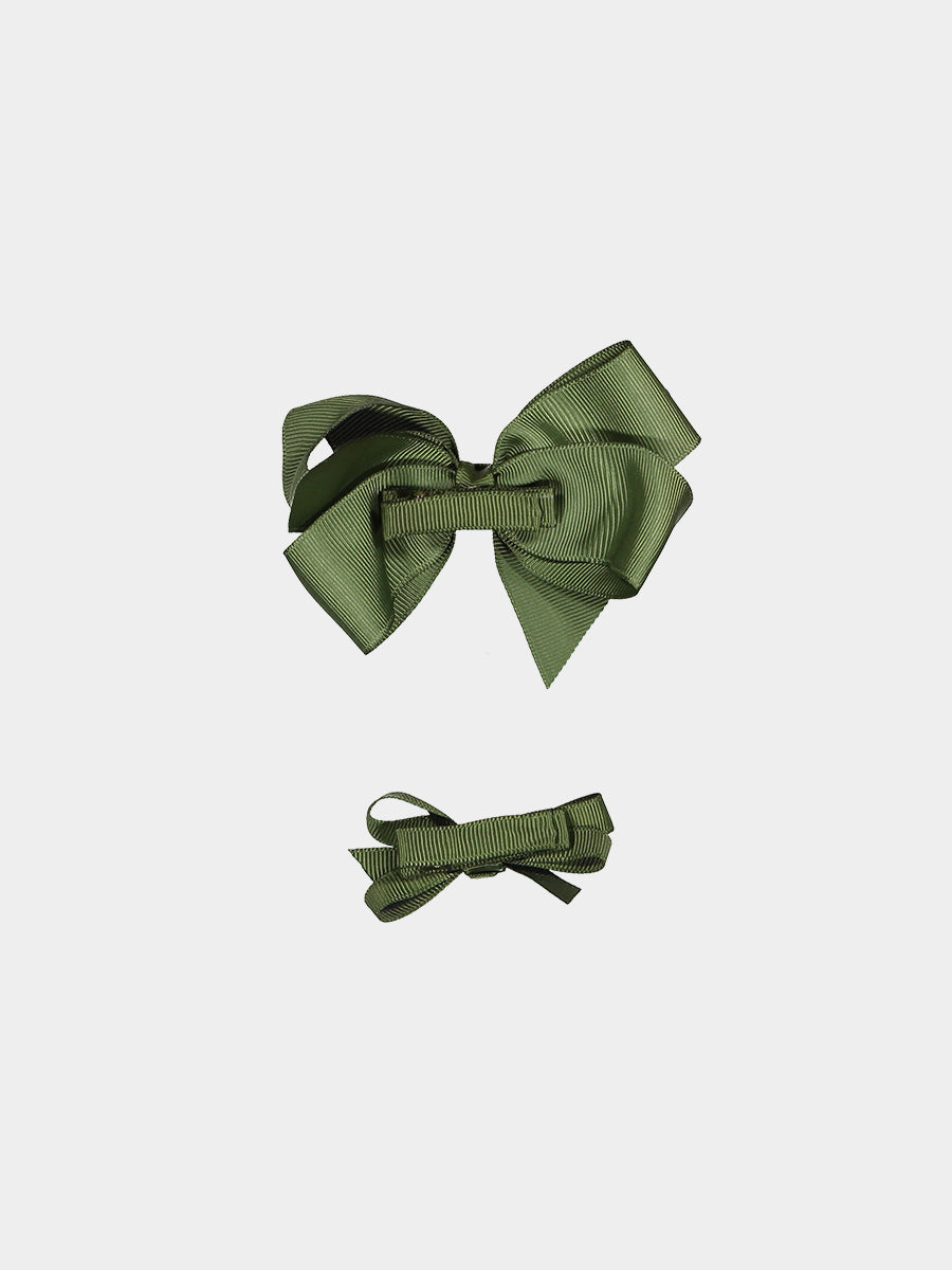 Ribbon Hair Bow Clip Set, Autumn Green