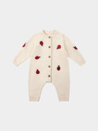 Quinn Hand-Embroidered Knitted Romper, Almond White