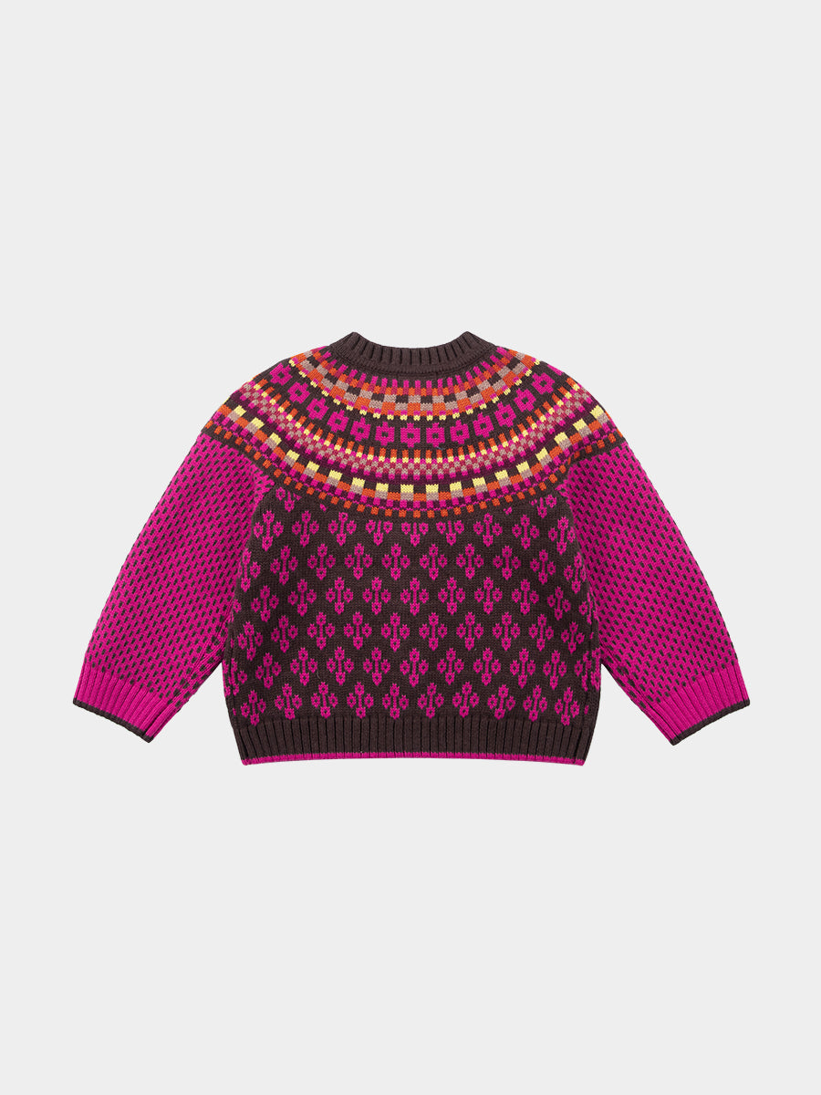 Aubrey Fair Isle Cardigan, Rose Pink Fair Isle