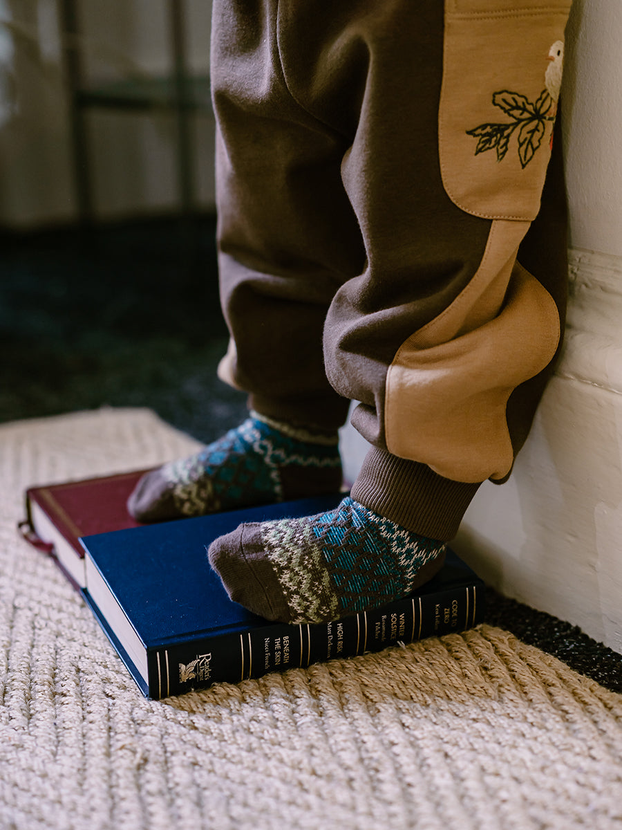 Fair Isle Socks, Pine Green & Light Olive Brown