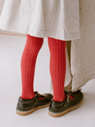 Happyology Ribbed Organic Cotton Tights, Rouge
