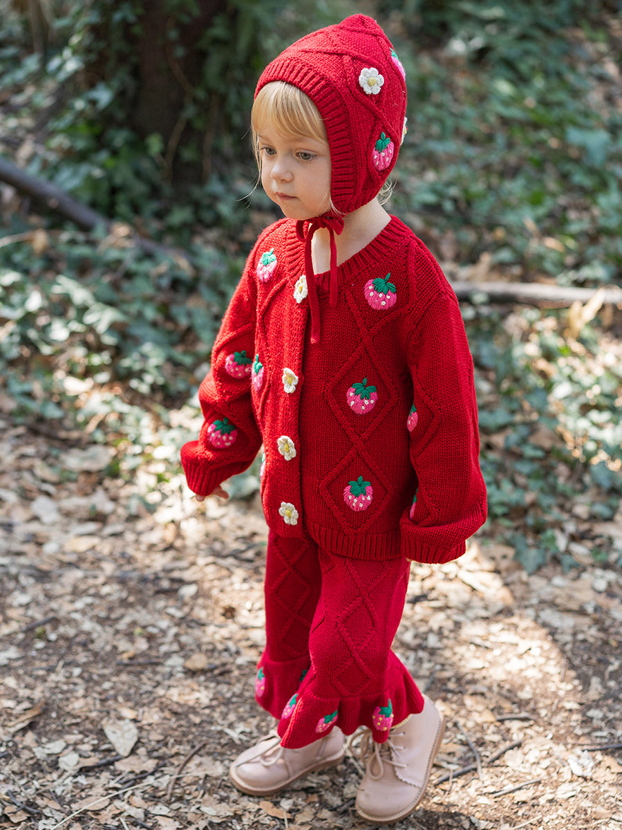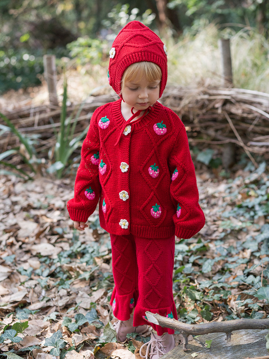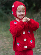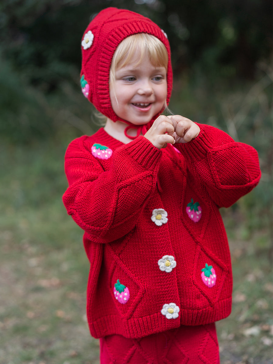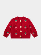Strawberry Hand-Embroidered Cardigan, Royal Red