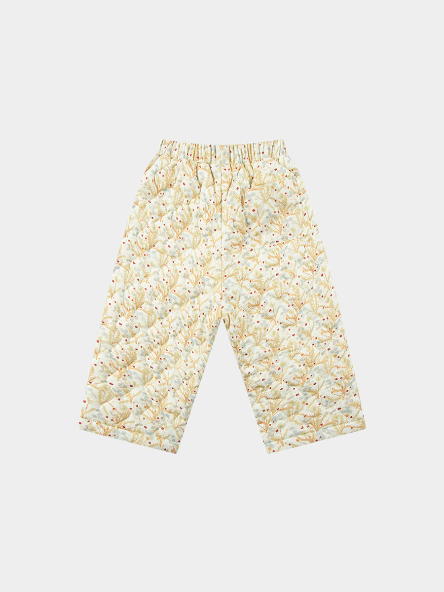 Camila Quilted Trousers, Strawberry Flower Field, White