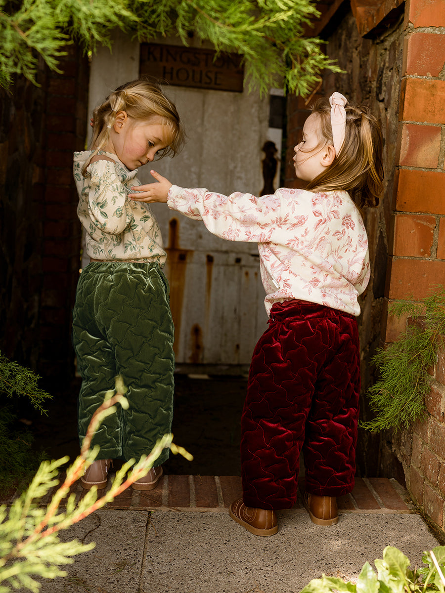 Sally Corduroy Trousers, Wildflower Polka, Burgundy