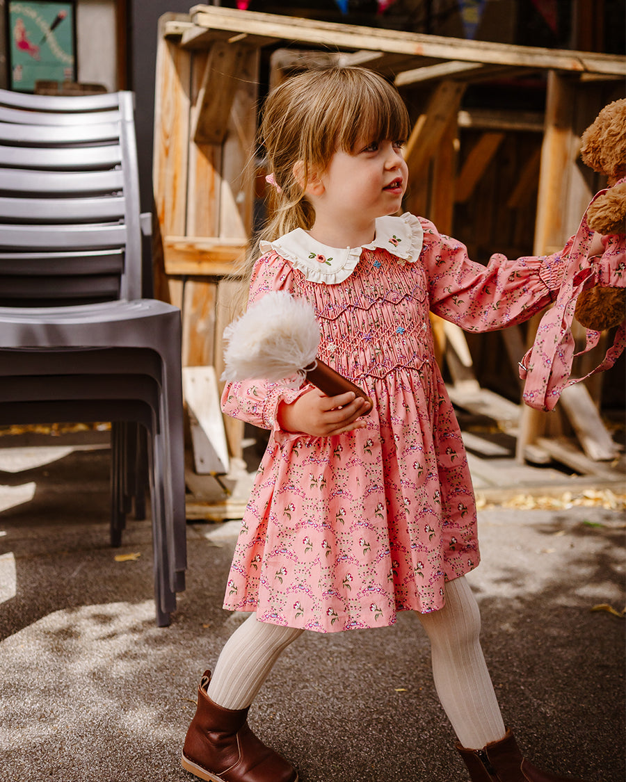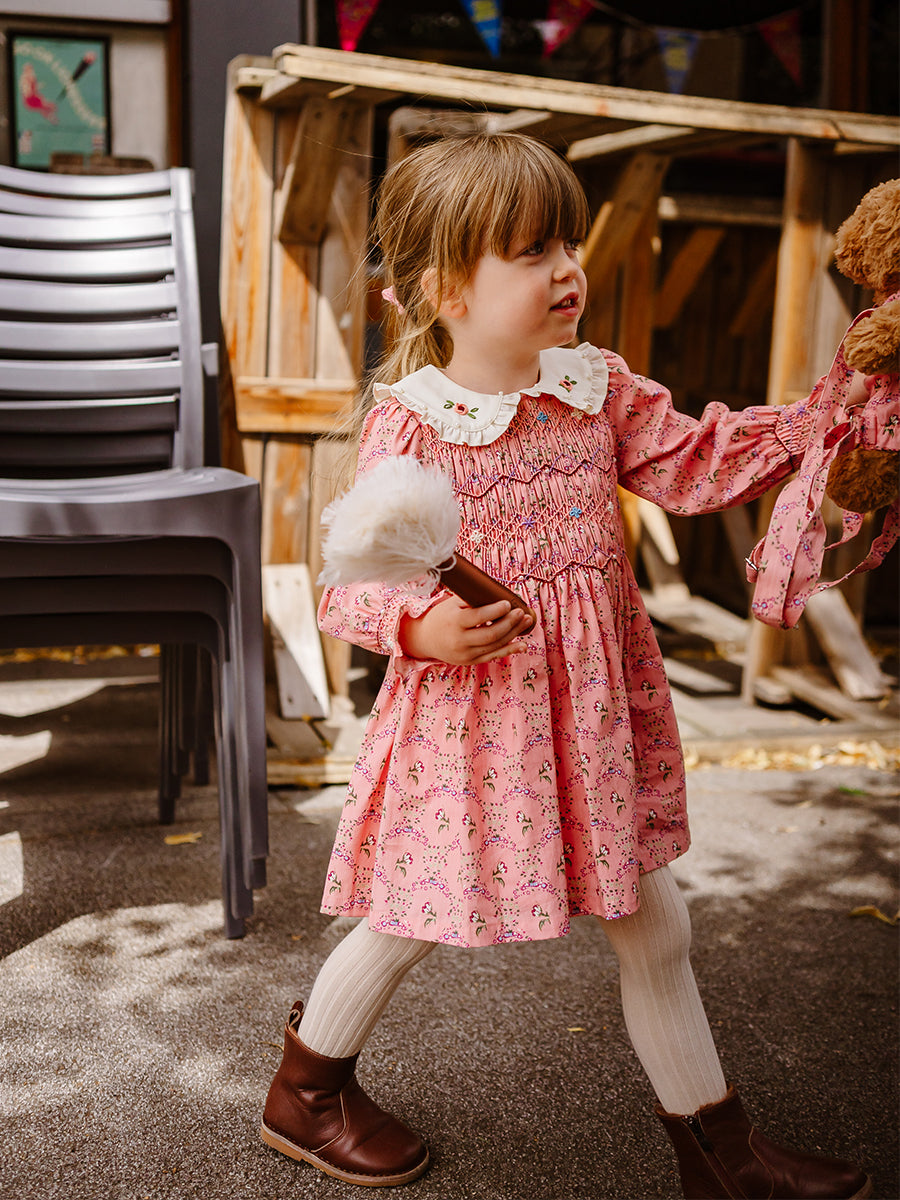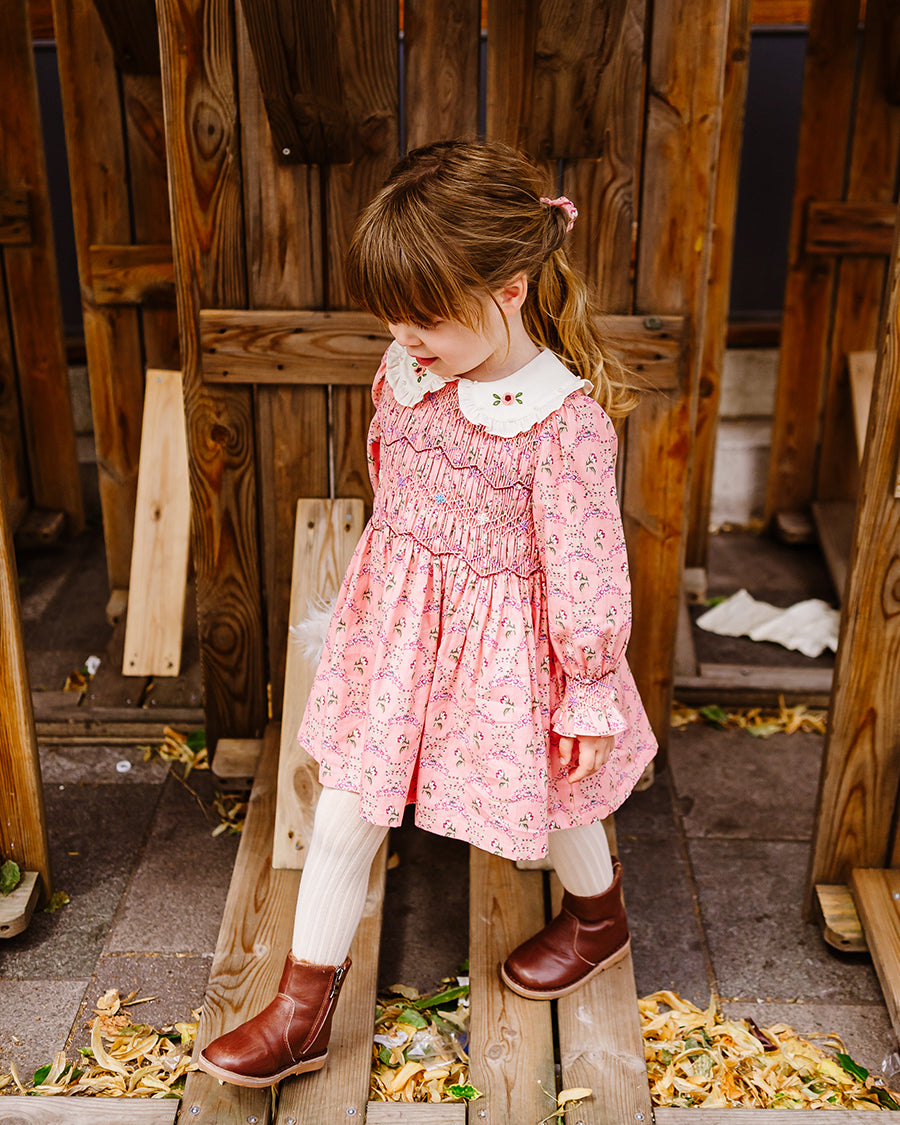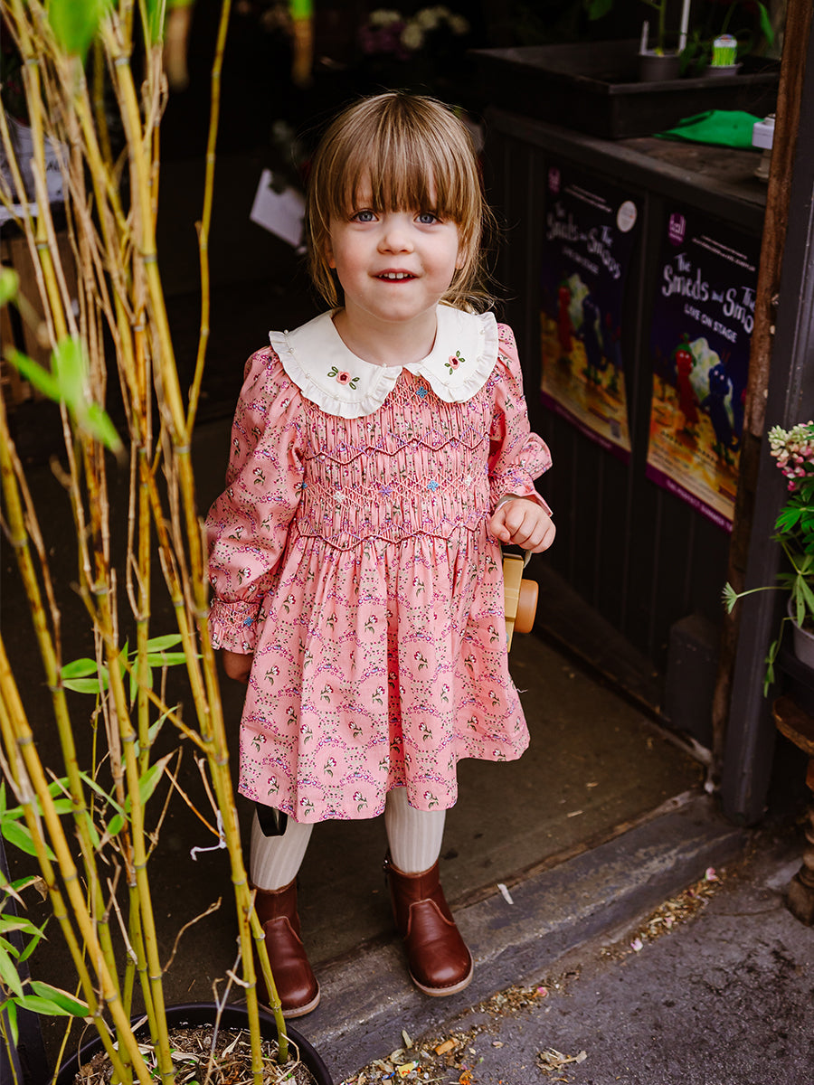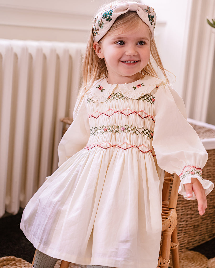 Our handmade pieces are lovingly brought to life by our in-house artisans — hand-smocked, hand-embroidered, delicately beaded and finished with beautiful attention to detail. Made in small quantities, each style is a little work of art, designed to be worn, treasured, and passed on.