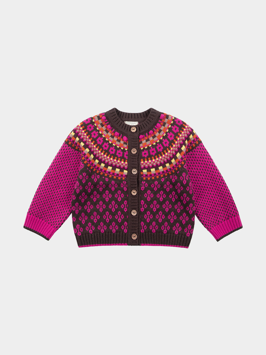 Aubrey Fair Isle Cardigan, Rose Pink Fair Isle