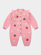 Strawberry Hand-Embroidered Romper, Princess Pink