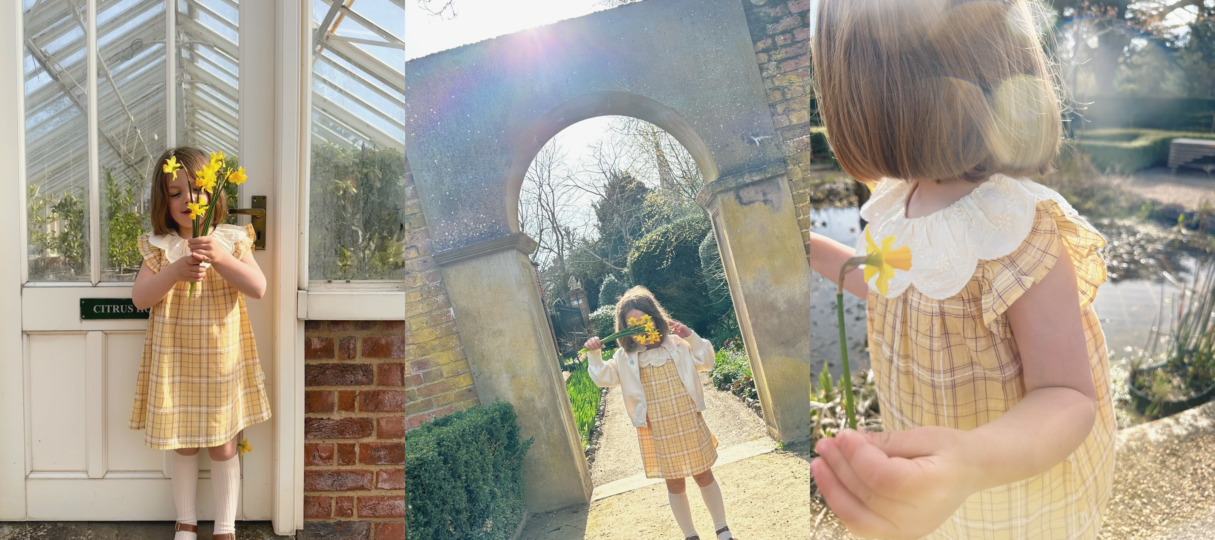 The yellow dress was one of my favourites - the perfect spring and Easter piece. I love a sock with a sandal, so I styled it that way and added my own oversized straw hat for an extra touch of charm. It felt sweet but still relaxed, Cece loved it too. She wore that look on repeat.