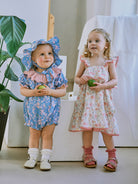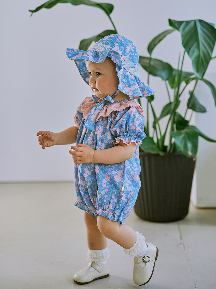 Grasmere Embroidered Collar Romper, Wildflower Lawn Blue