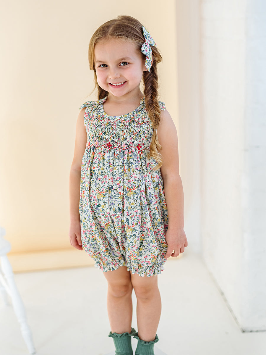 Hedera Smocking Romper, Fine Spring Day