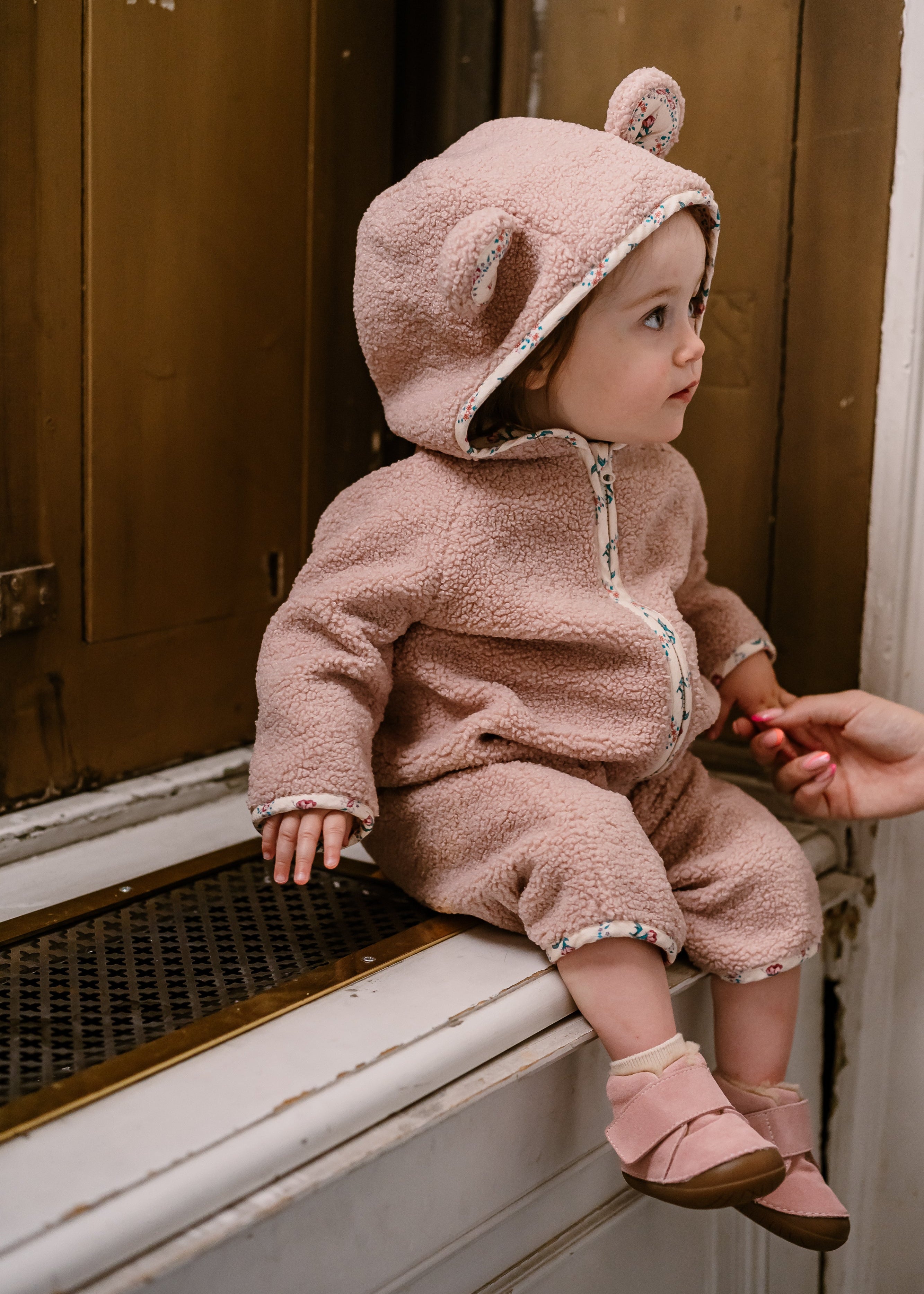Jules Faux Fur Romper Coat, Misty Pink