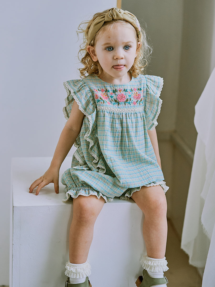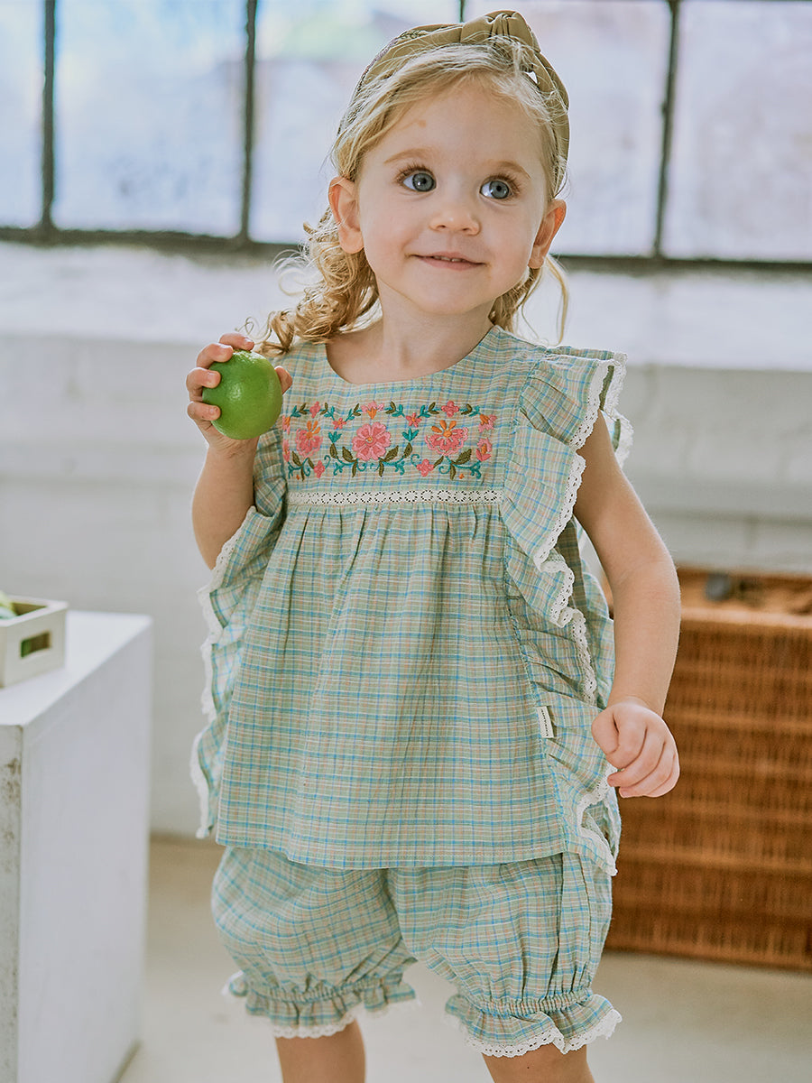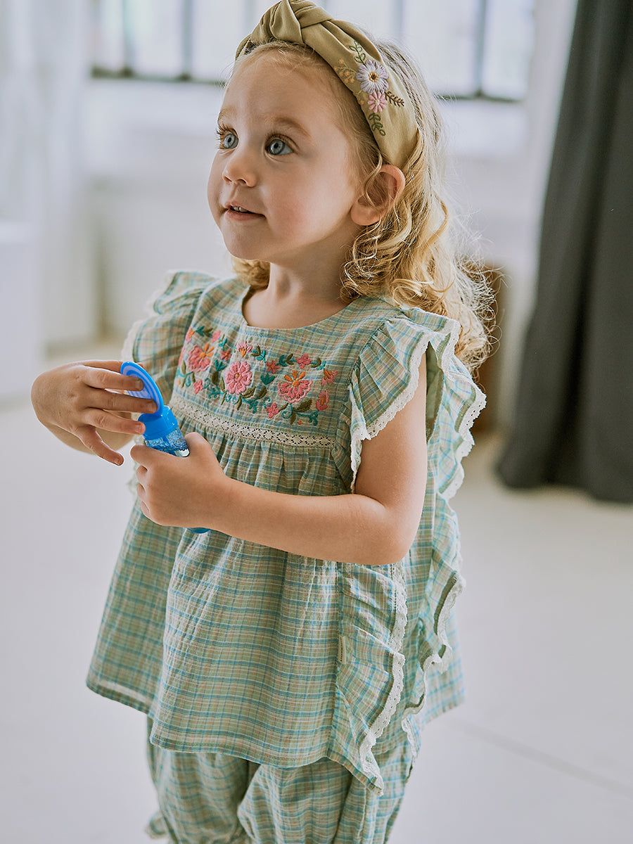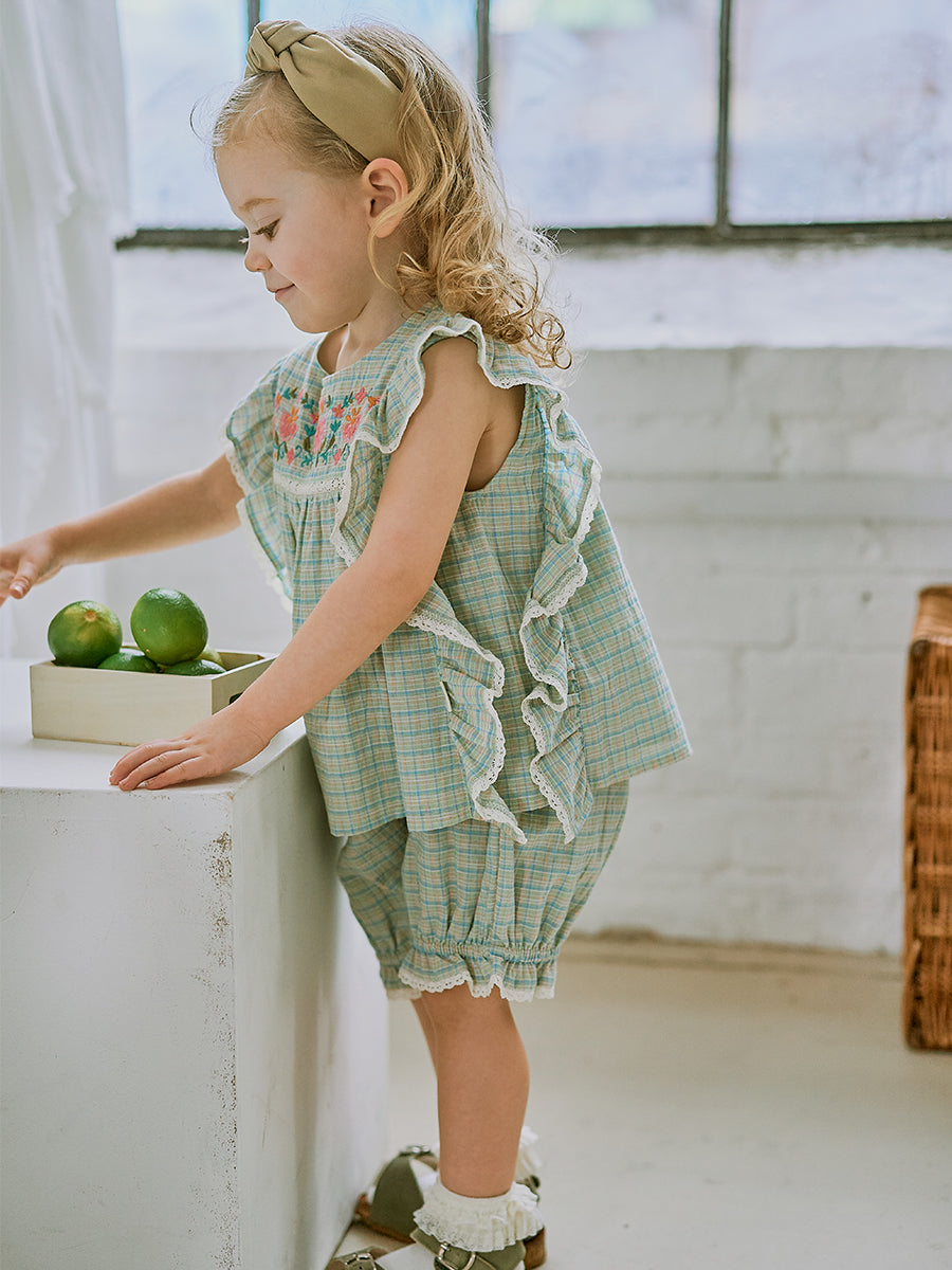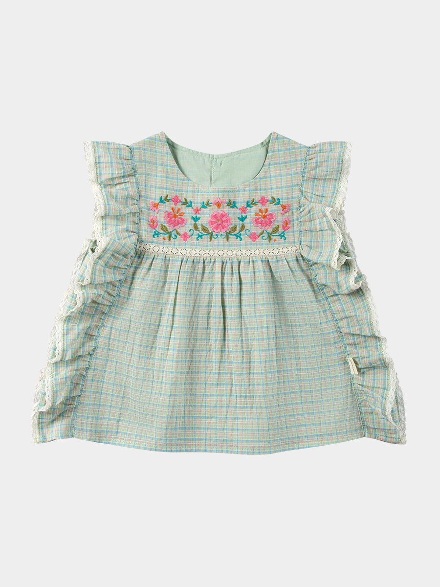 Mysuru Embroidery Blouse, Green Check