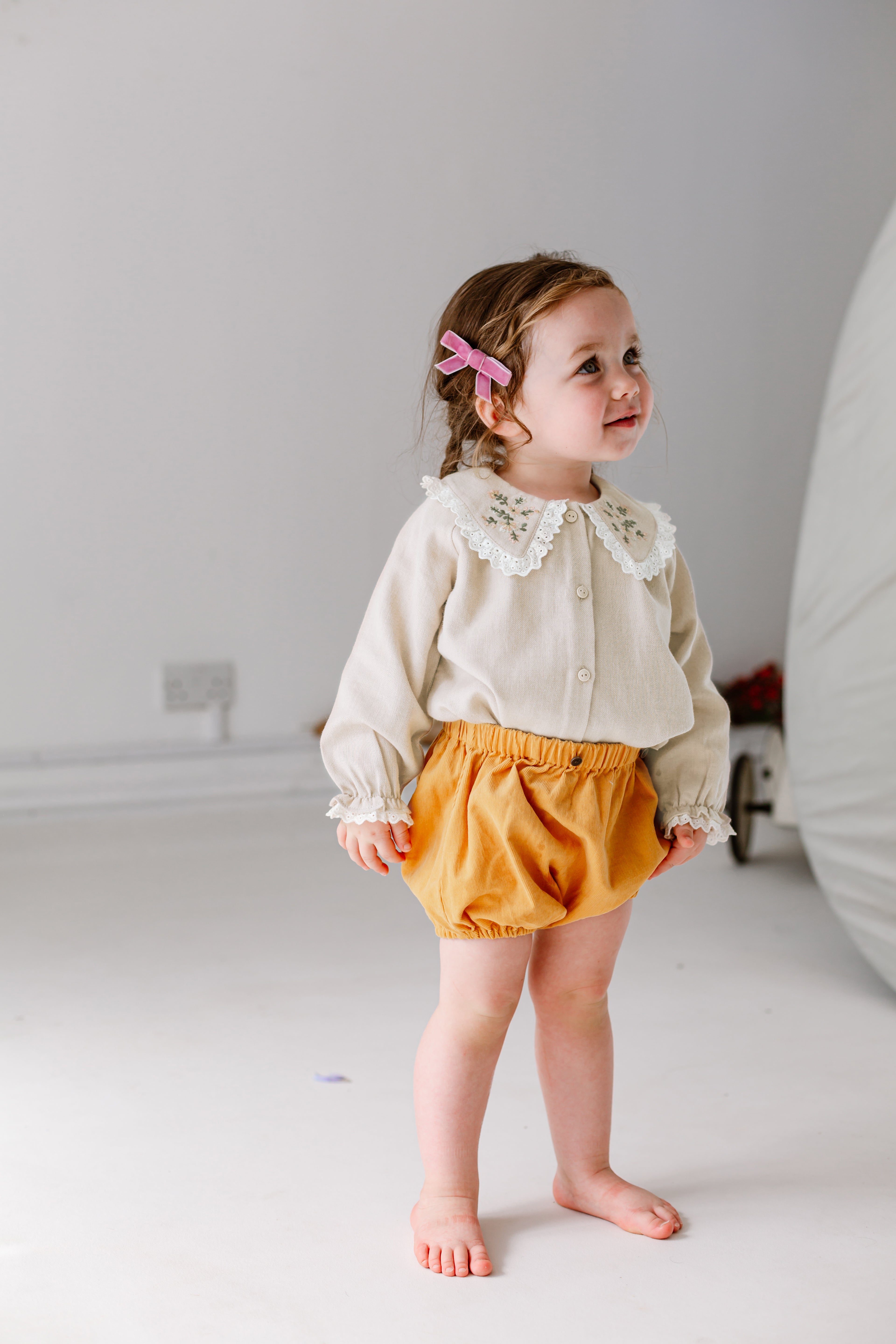 Glenni Embroidered Dungaree, Natural Linen