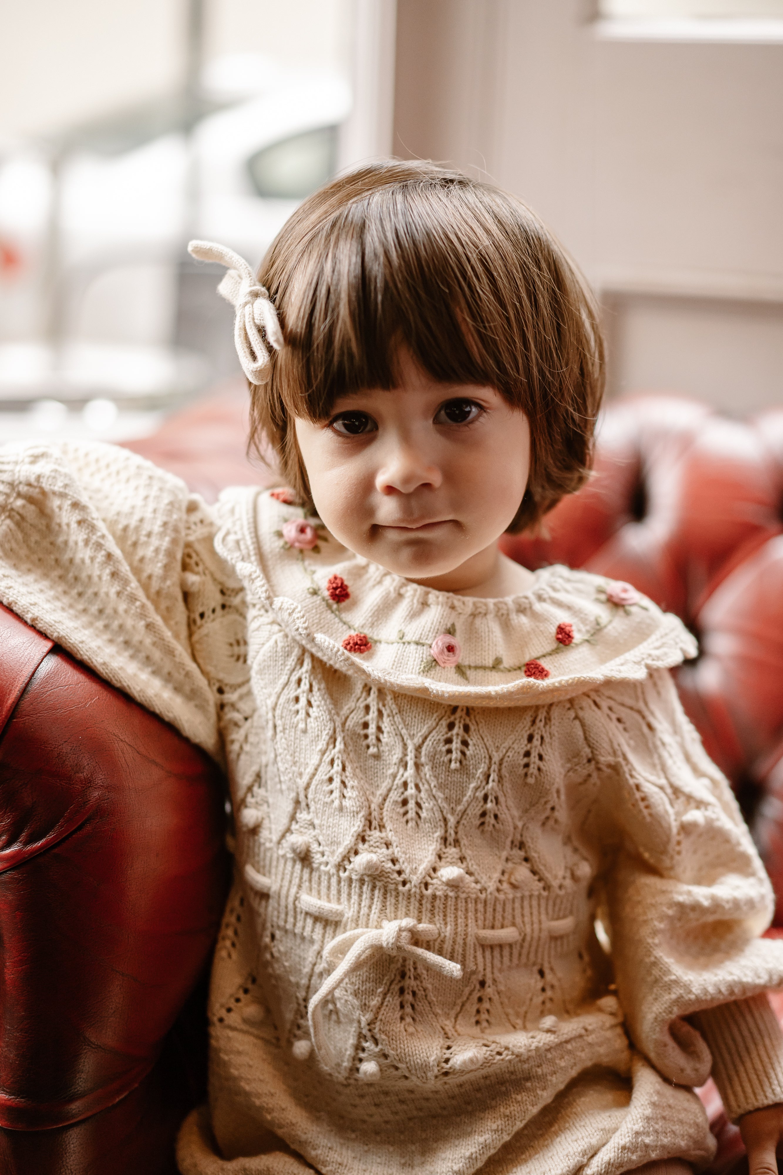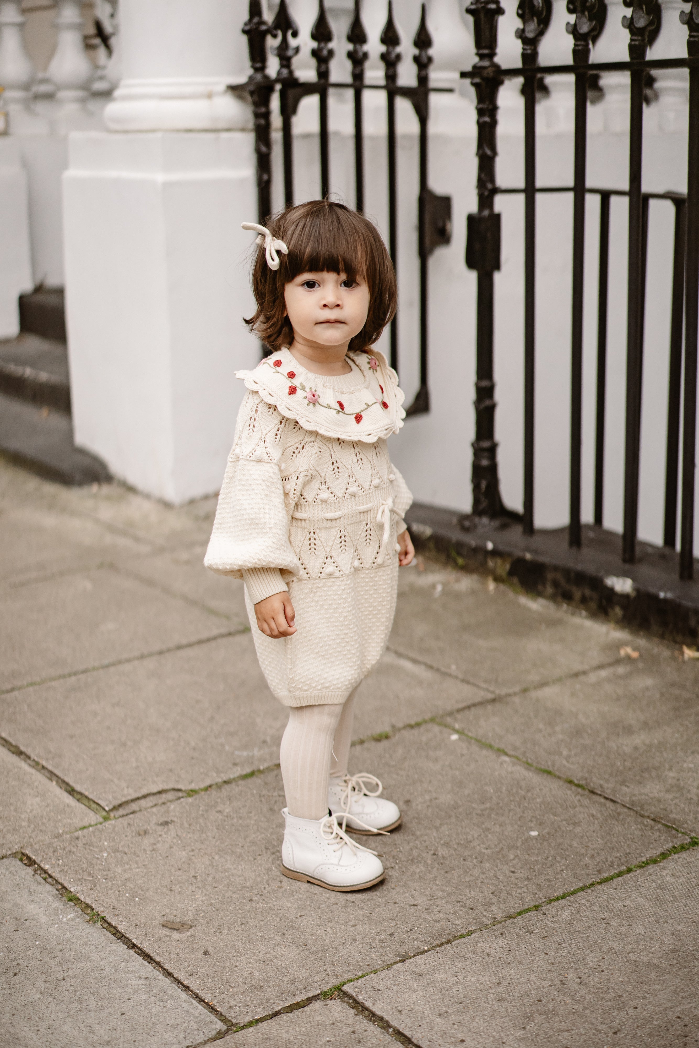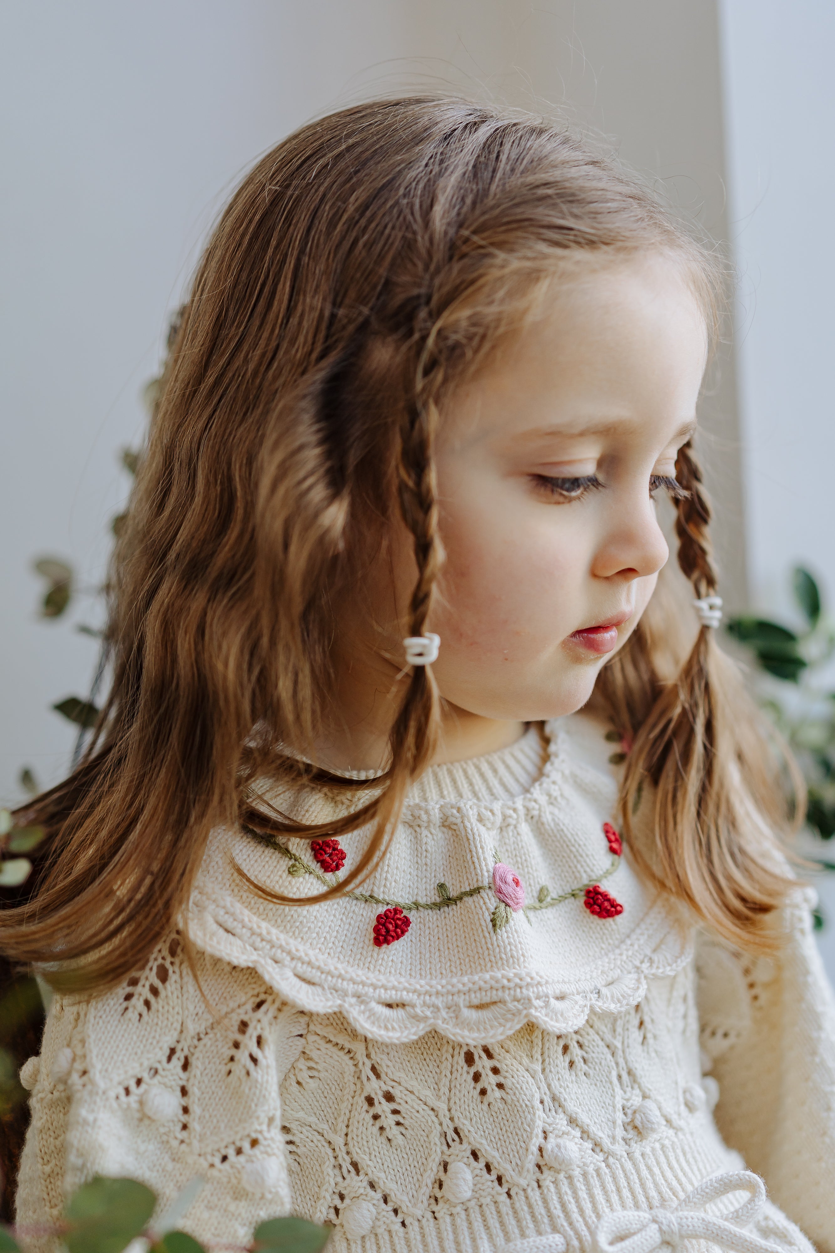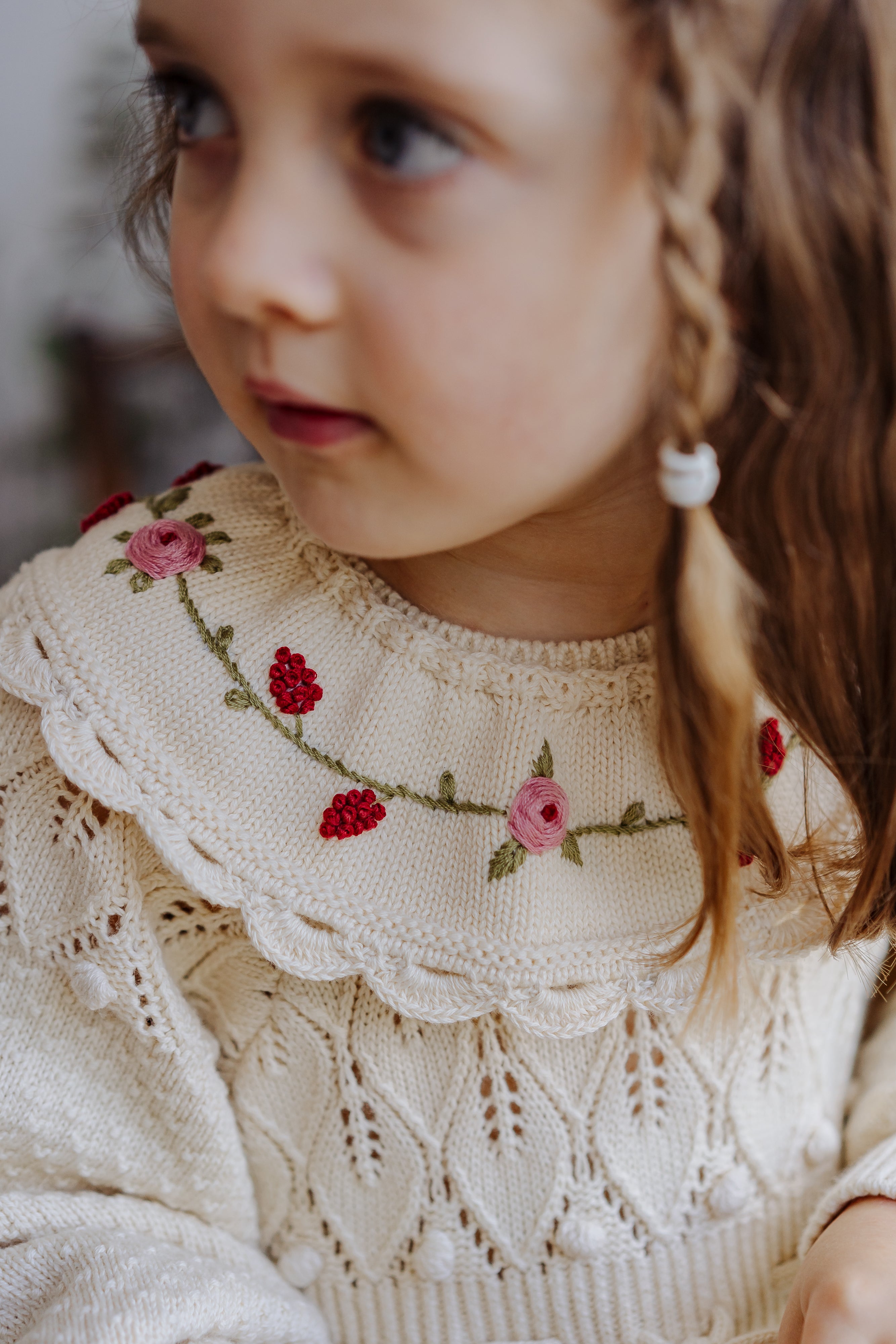 Jasmine Embroidered Knitted Collar, Ice Cream