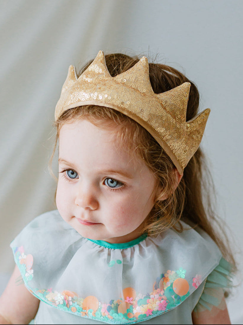 Mary Sequined Fabric Crown, Sparkling Gold