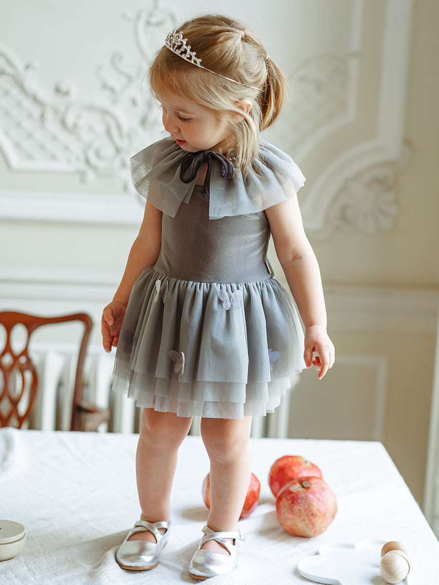 Whitby Tulle Dress & Collar Set, Misty Grey