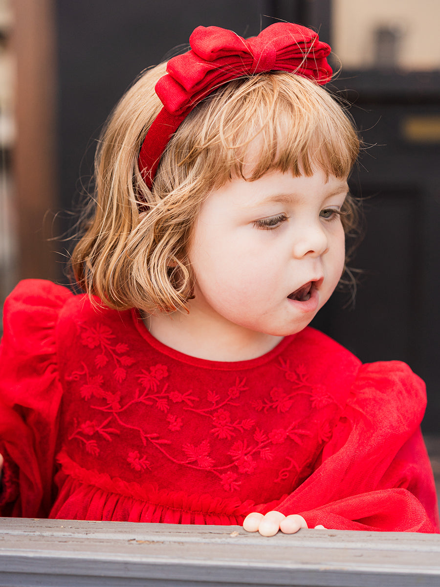 Iris Velvet Bow Clip, Princess Red