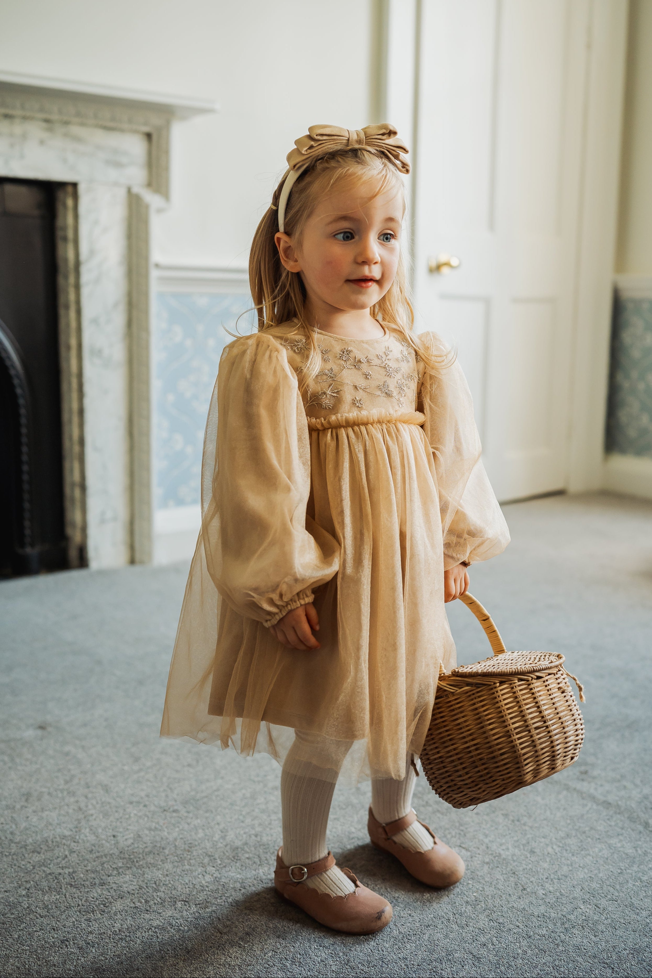 Whitby Tulle Dress & Collar Set, Khaki