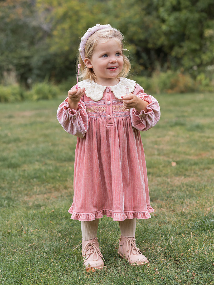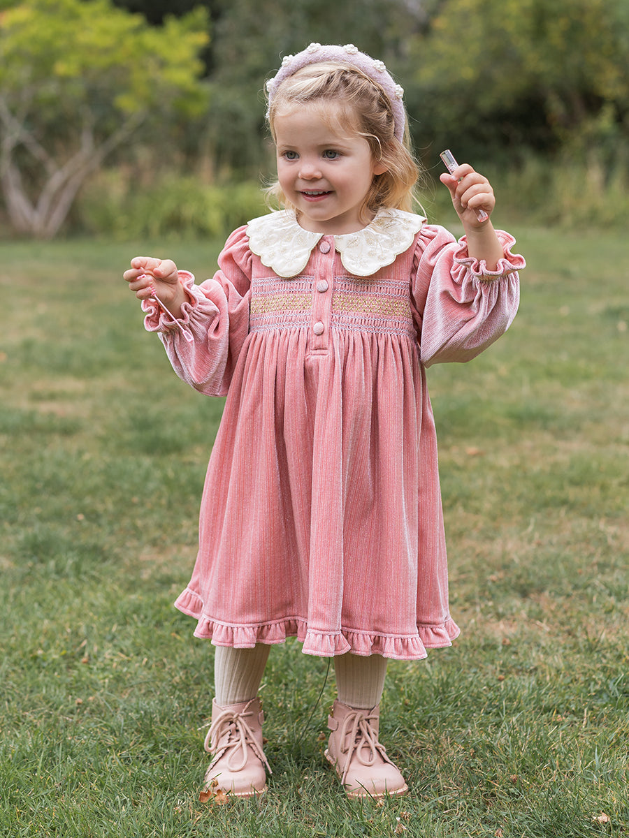 Julie Smocking Dress, Velvet Pink