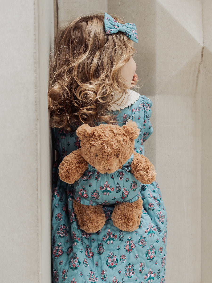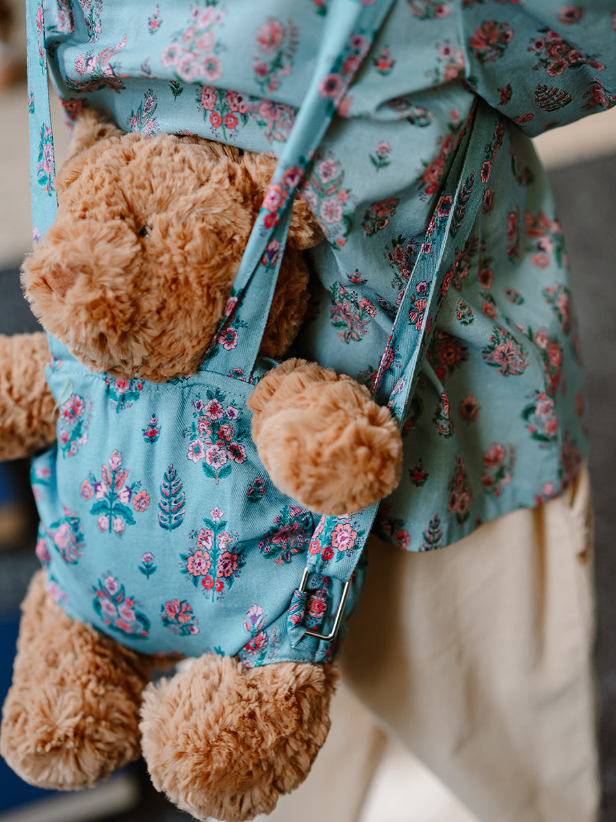 Teddy Bear Overall Shorts, Leela Botanic, Teal