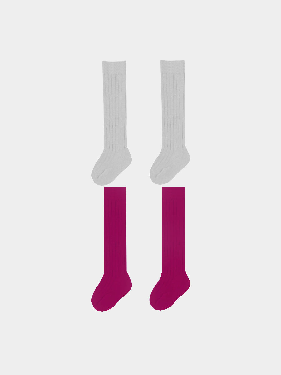 Etienne Knee High Socks Set of 2, Silver Grey & Raspberry