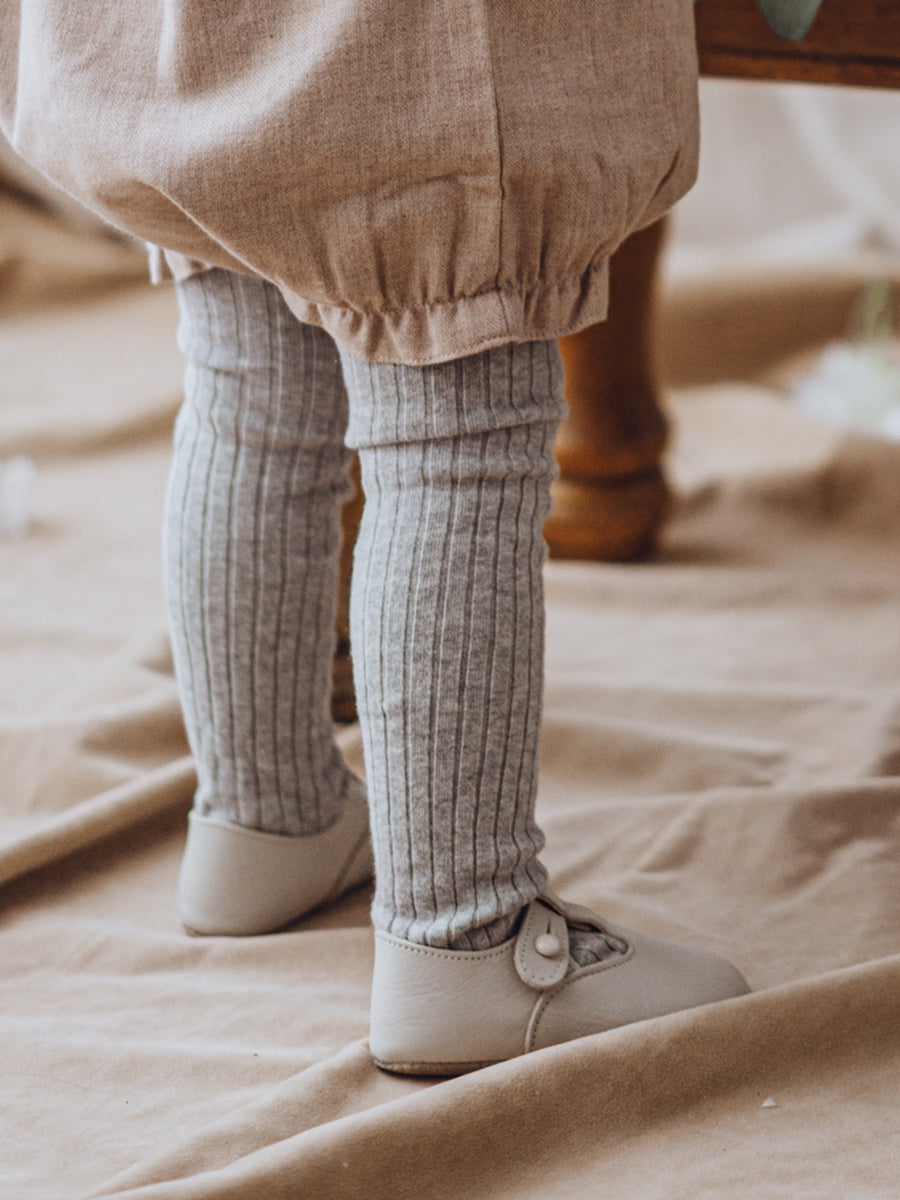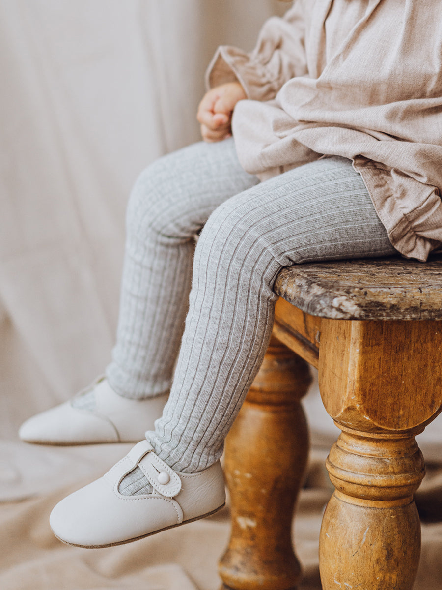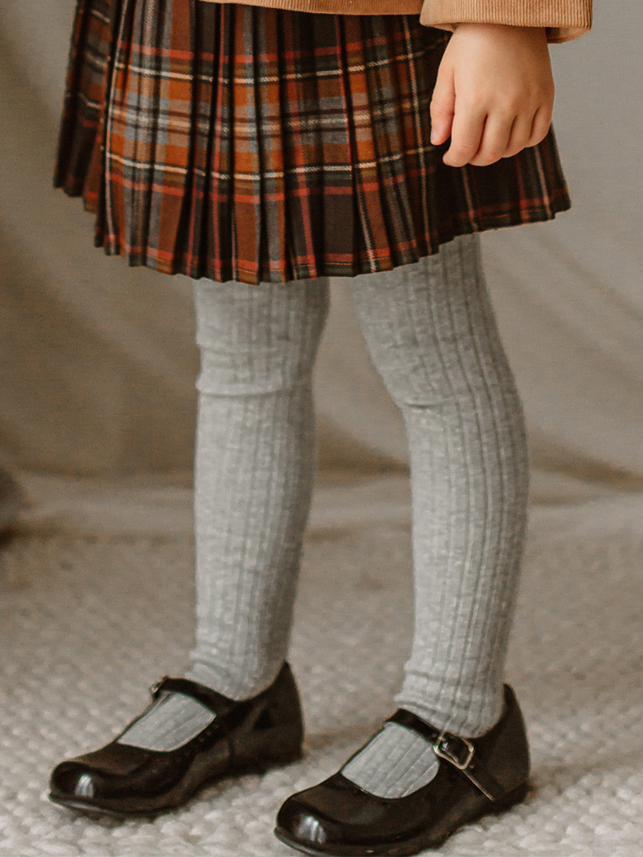 Happyology Ribbed Organic Cotton Tights, Silver Grey