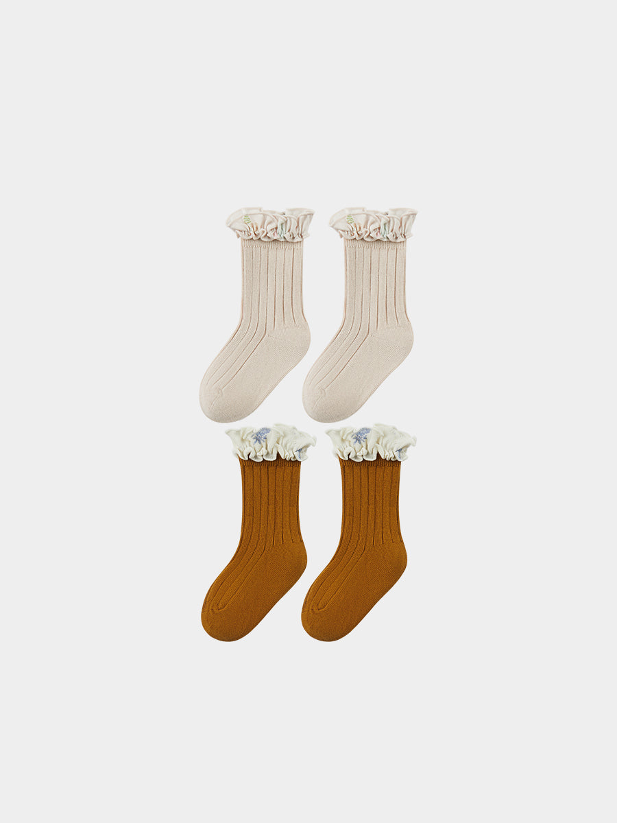 Jessielle Ankle Socks with Floral Ruffle, Caramel & Crème Brulee