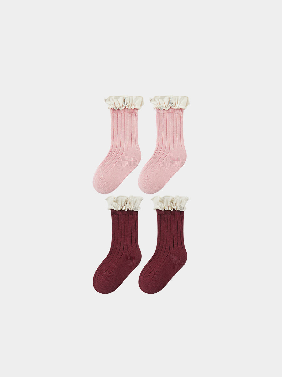 Jessielle Ankle Socks with Floral Ruffle, Misty Pink & Pomegranate Red