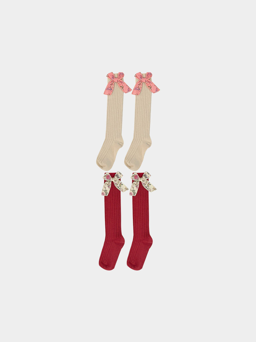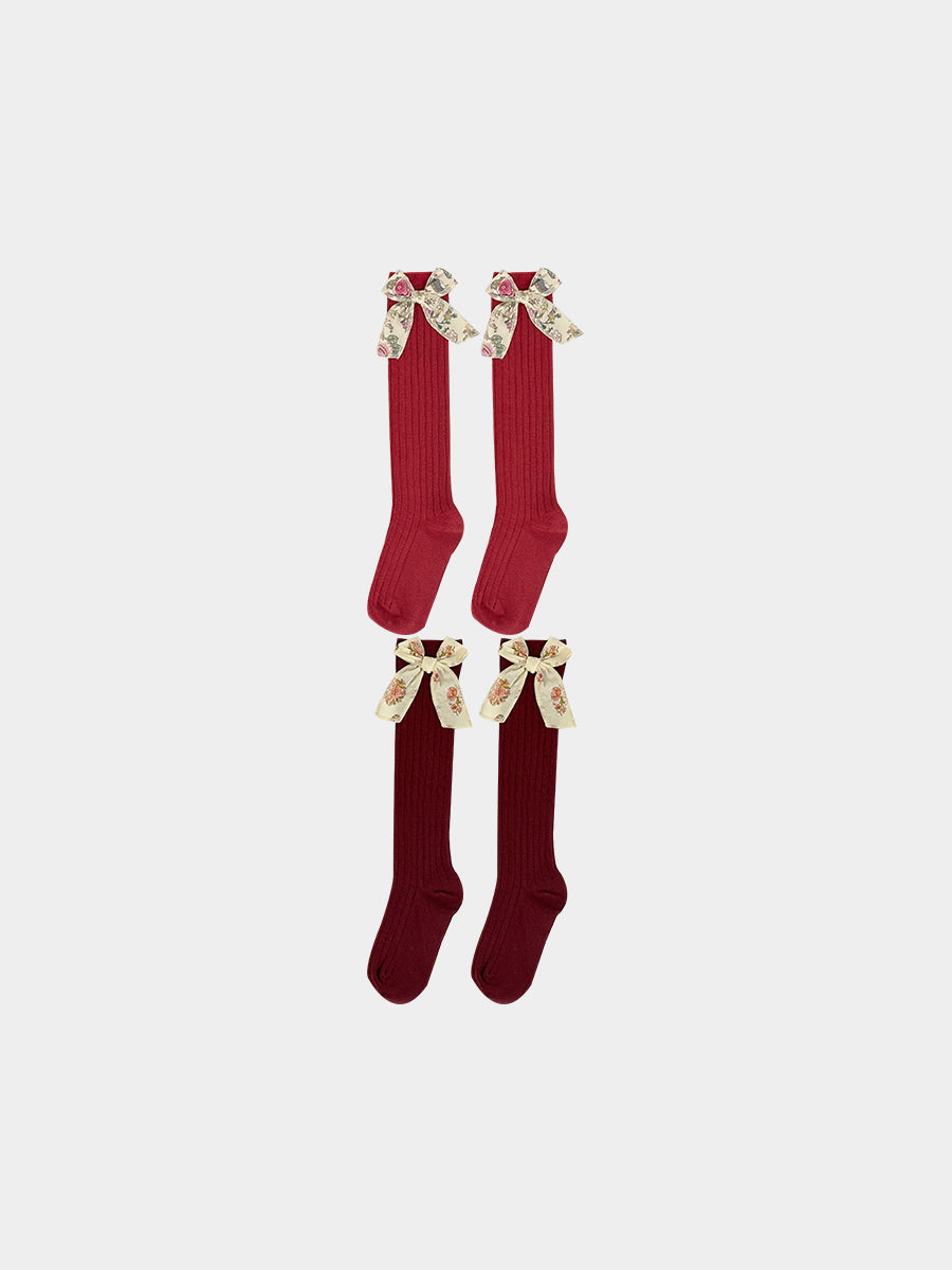 Noelle Bow Socks, Pomegranate Red & Princess Red