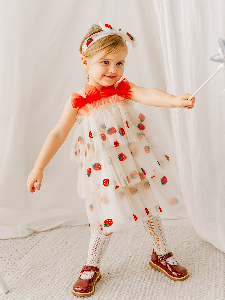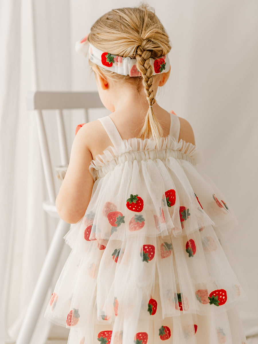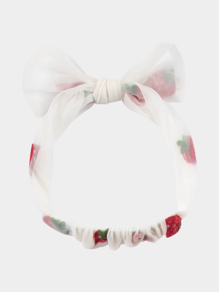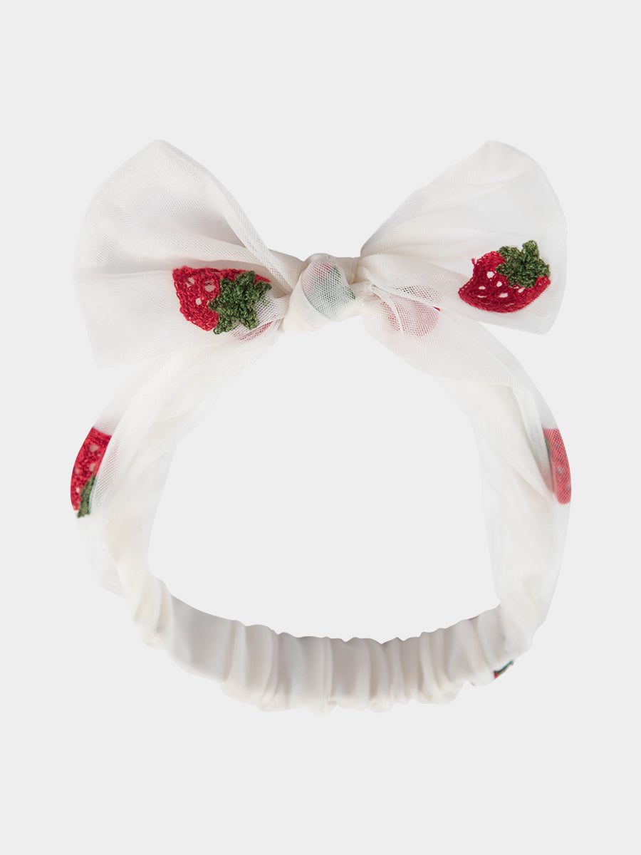 Karisa Strawberry Tulle Headband, Almond White