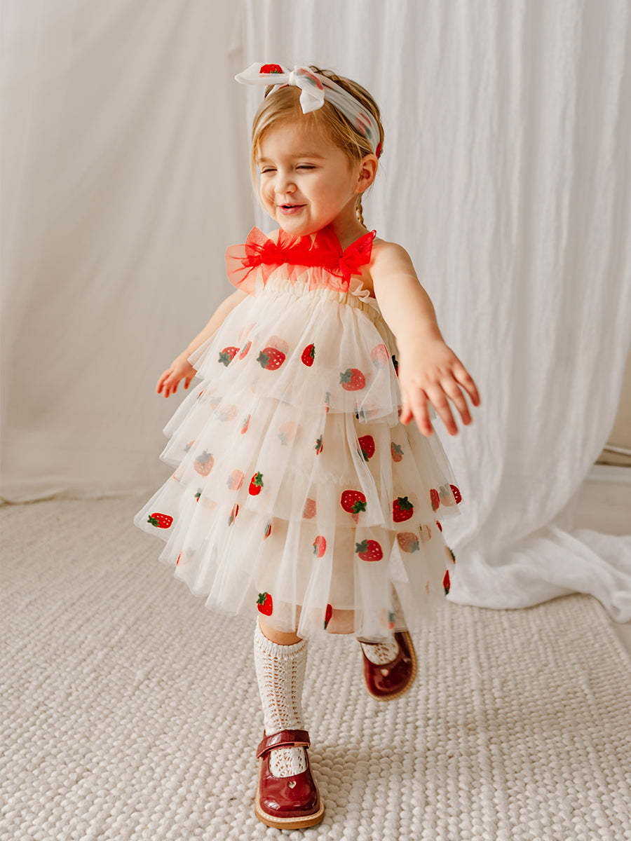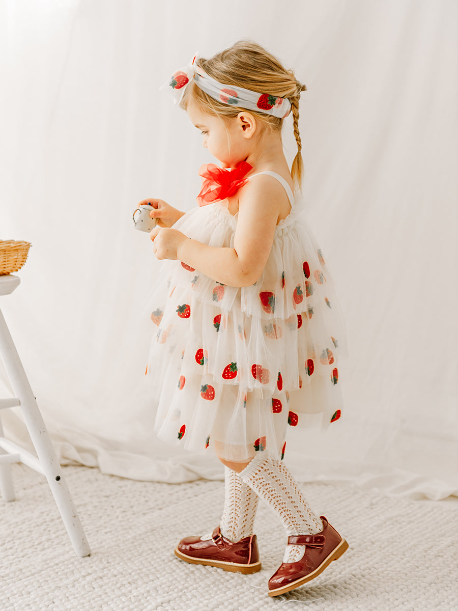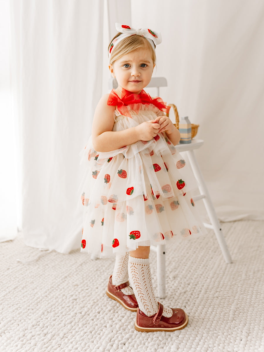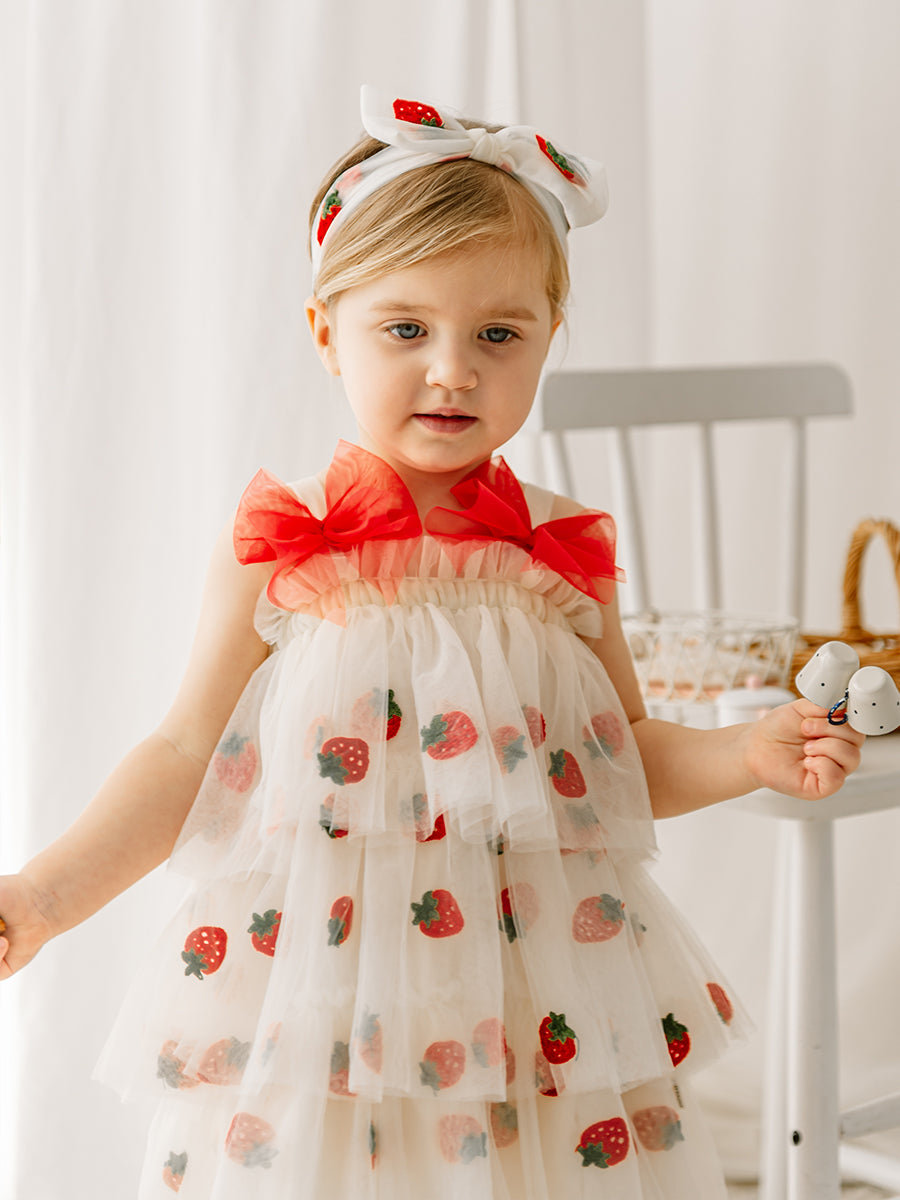 Karisa Strawberry Tulle Headband, Almond White