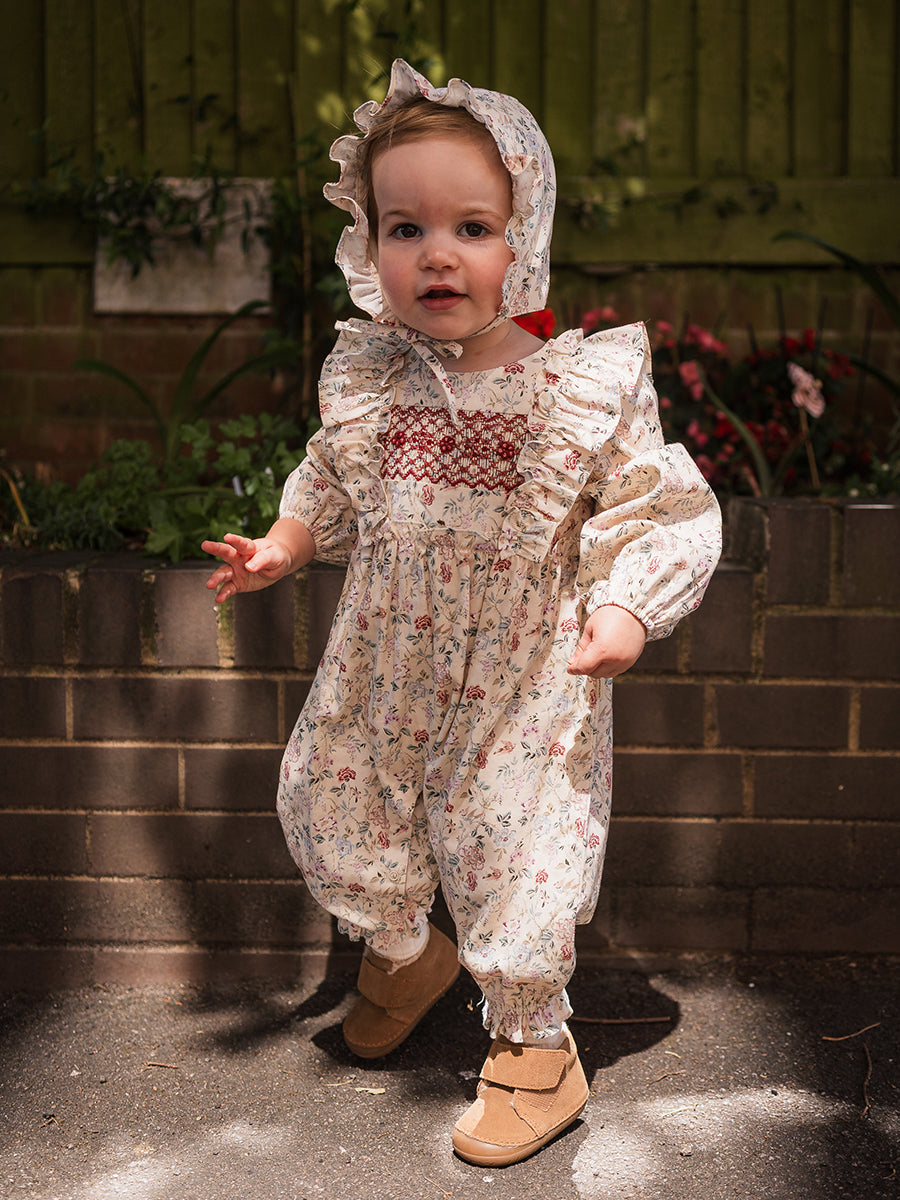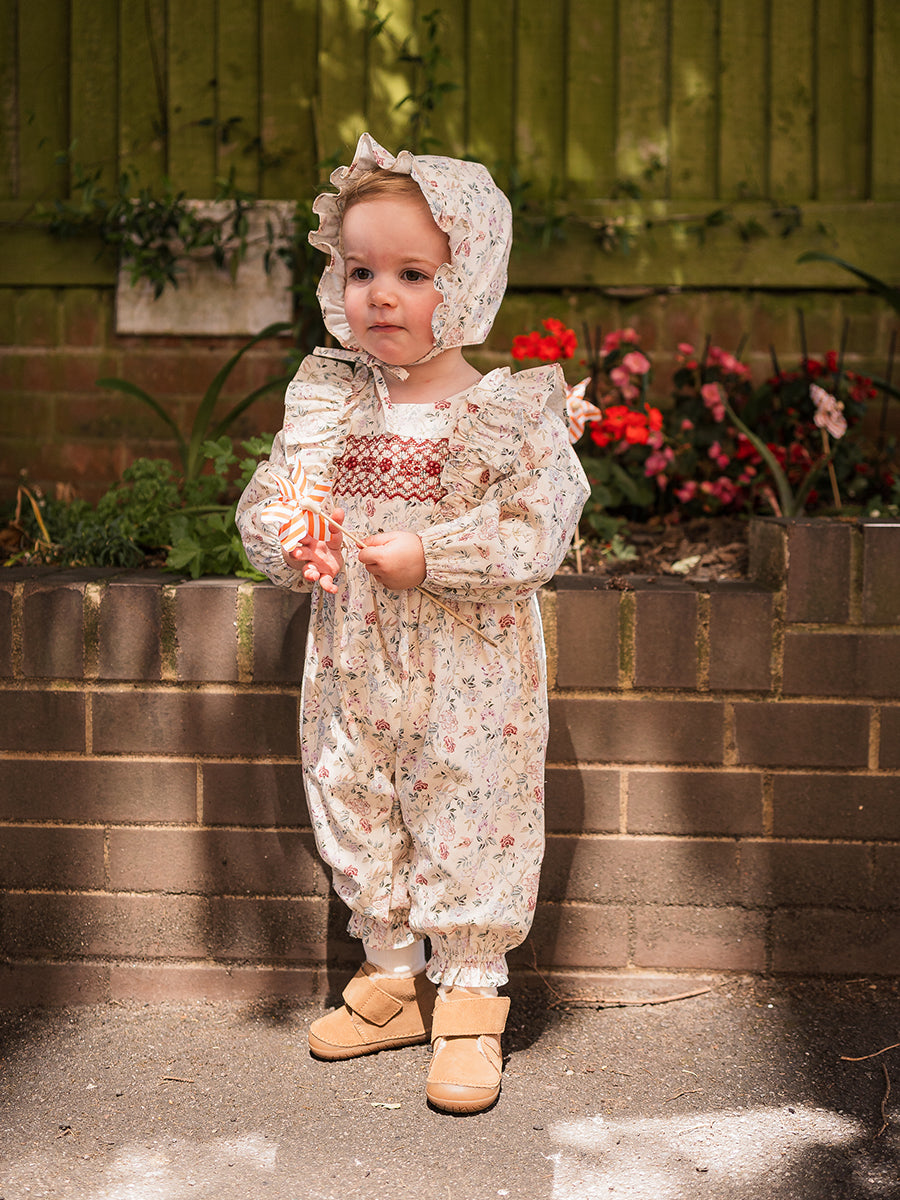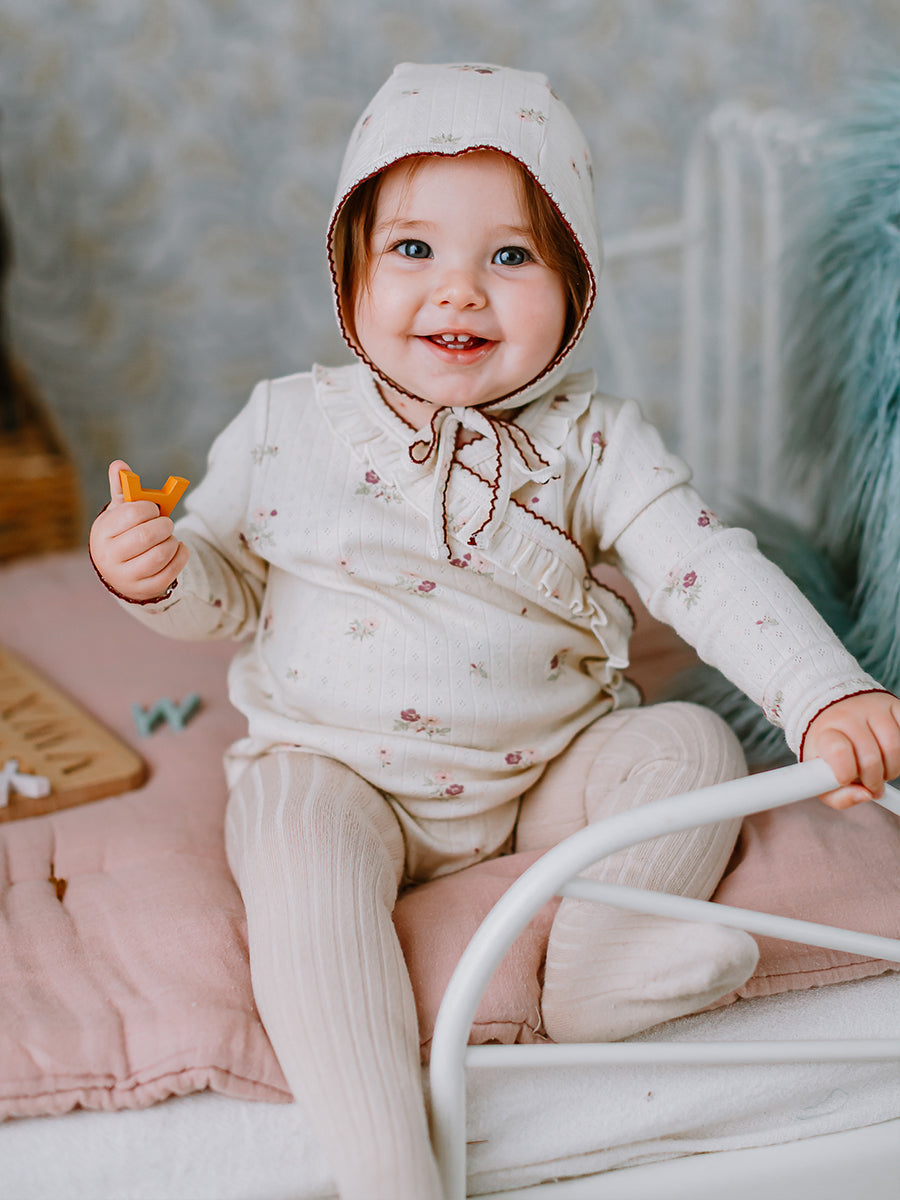 Strawberry Hand-Embroidered Bonnet, Crème Brulee