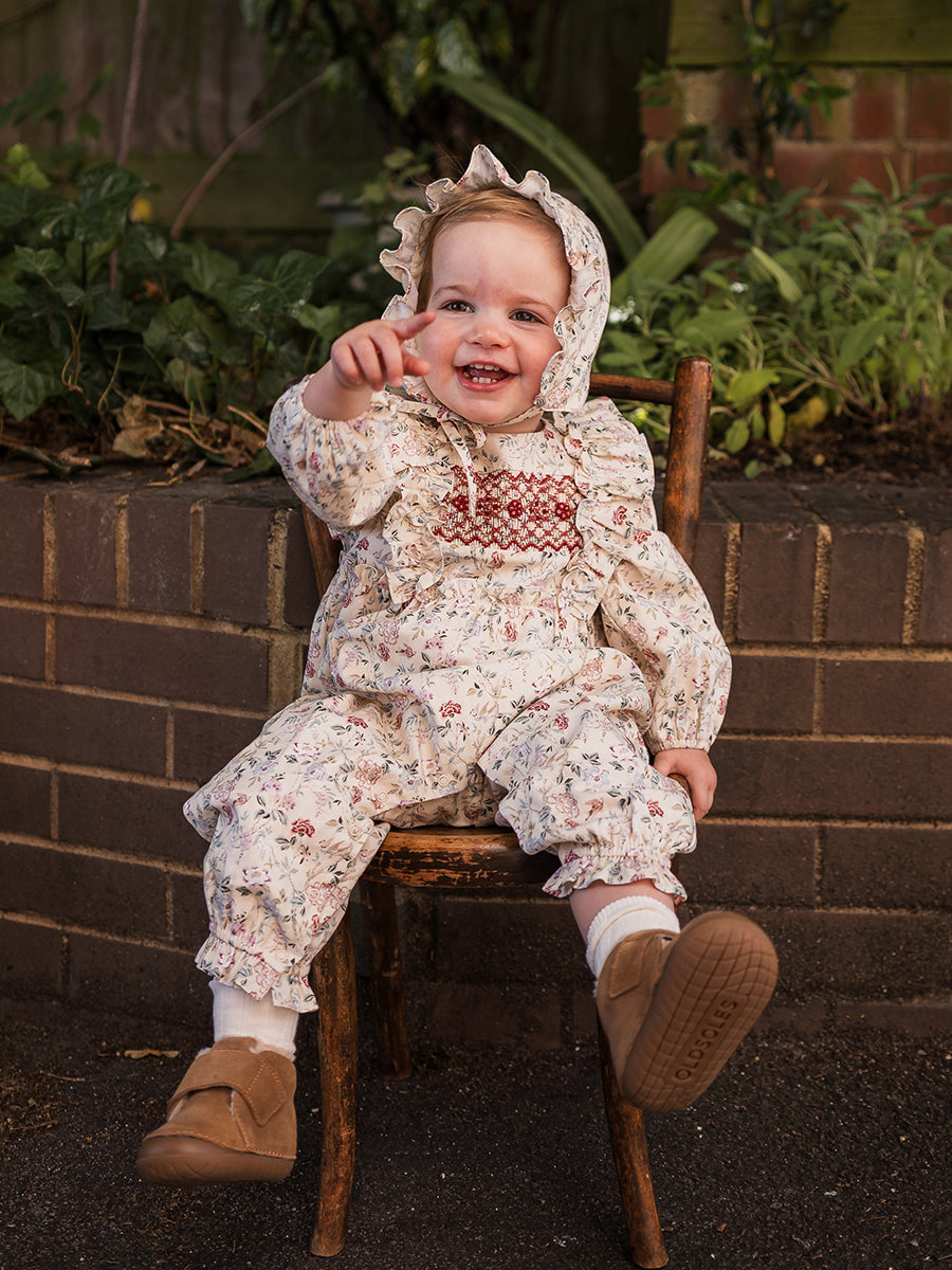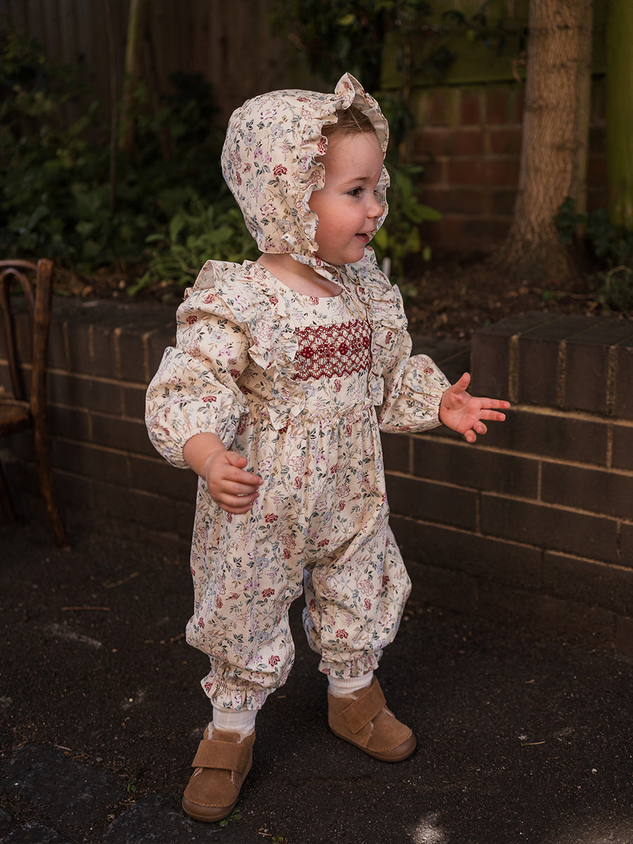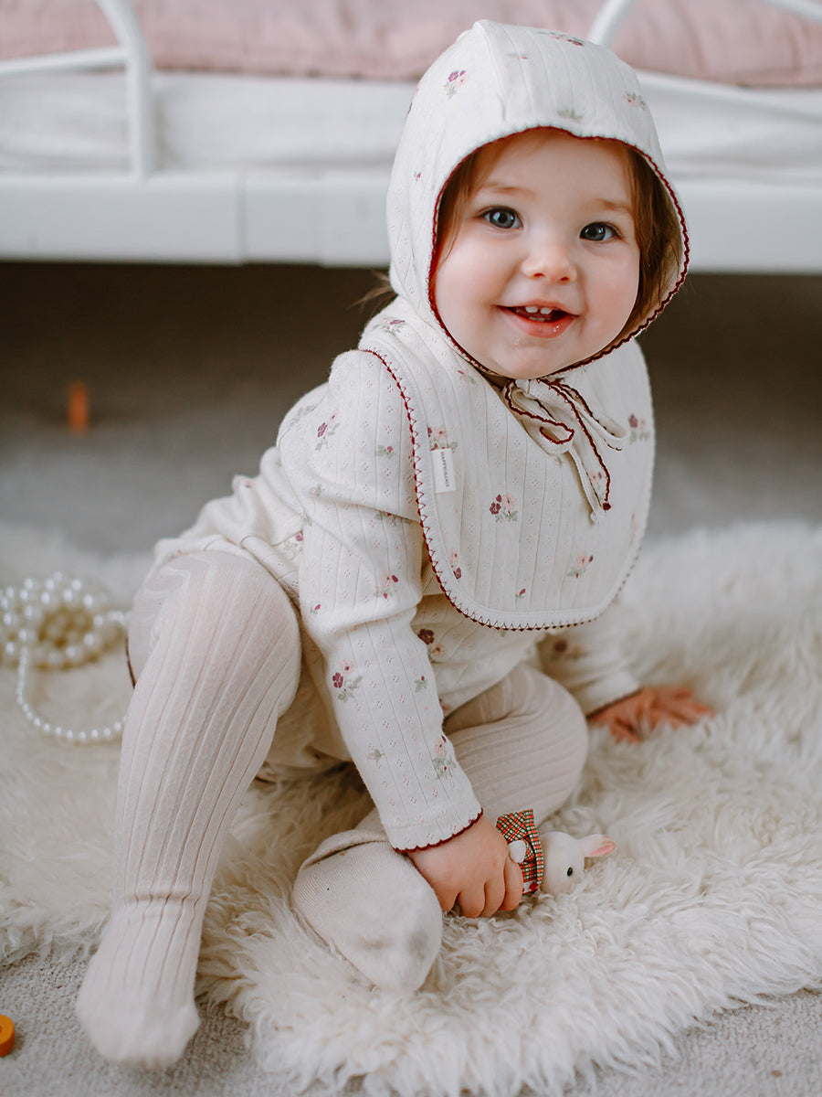 Strawberry Hand-Embroidered Bonnet, Crème Brulee