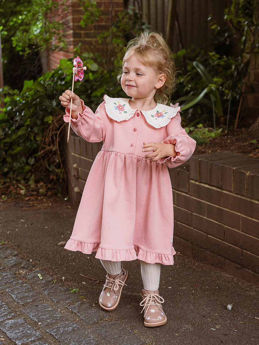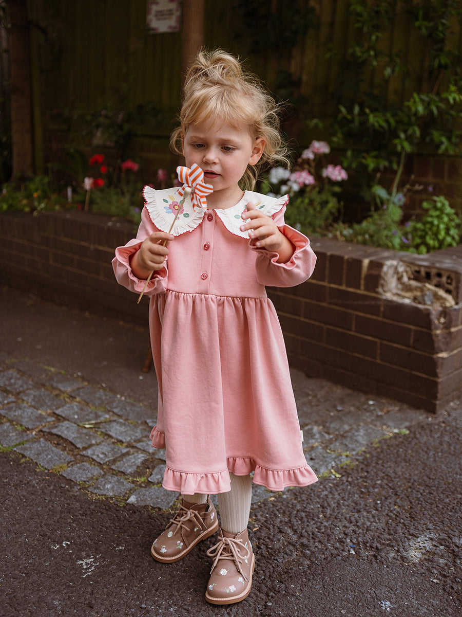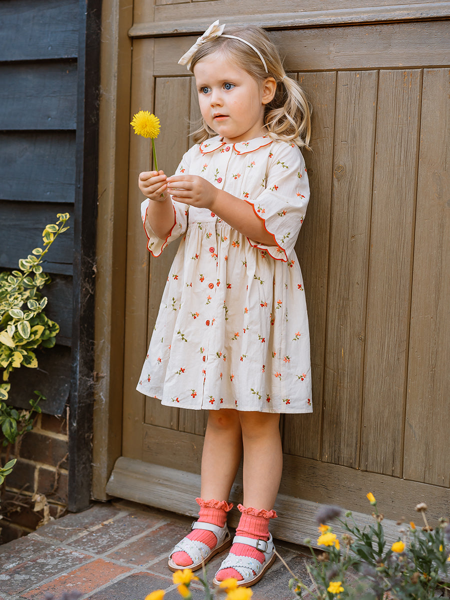 Laila Embroidered Dress, Strawberry Flower Field, Blush