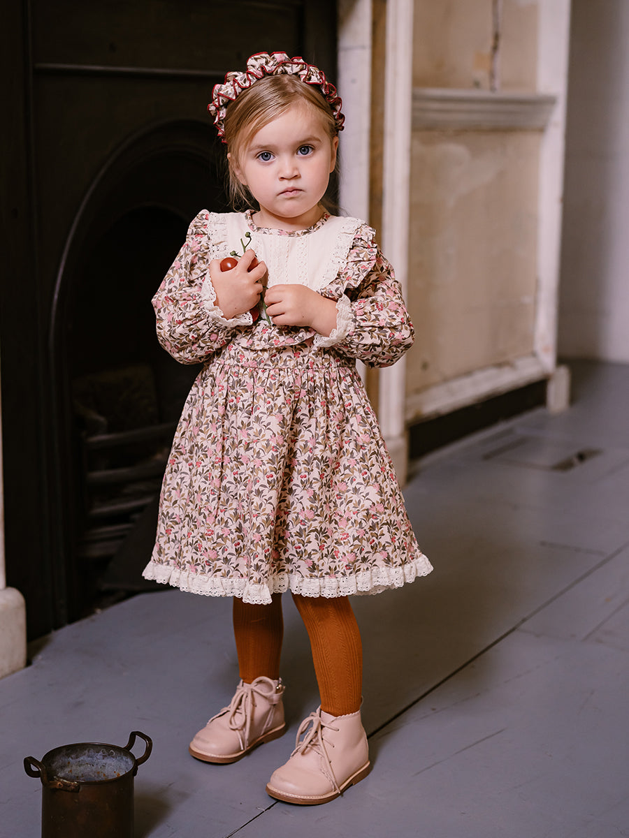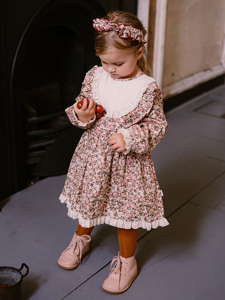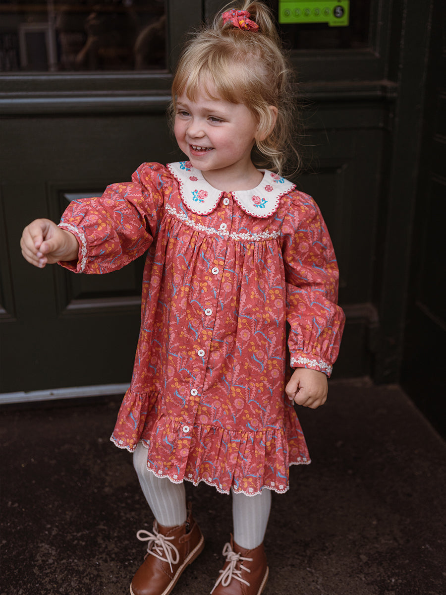 Laila Embroidered Dress, Strawberry Flower Field, Blush