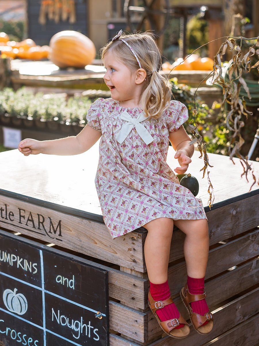 Abigail Hand-Smocked Dress, Farnese Garden, Cream