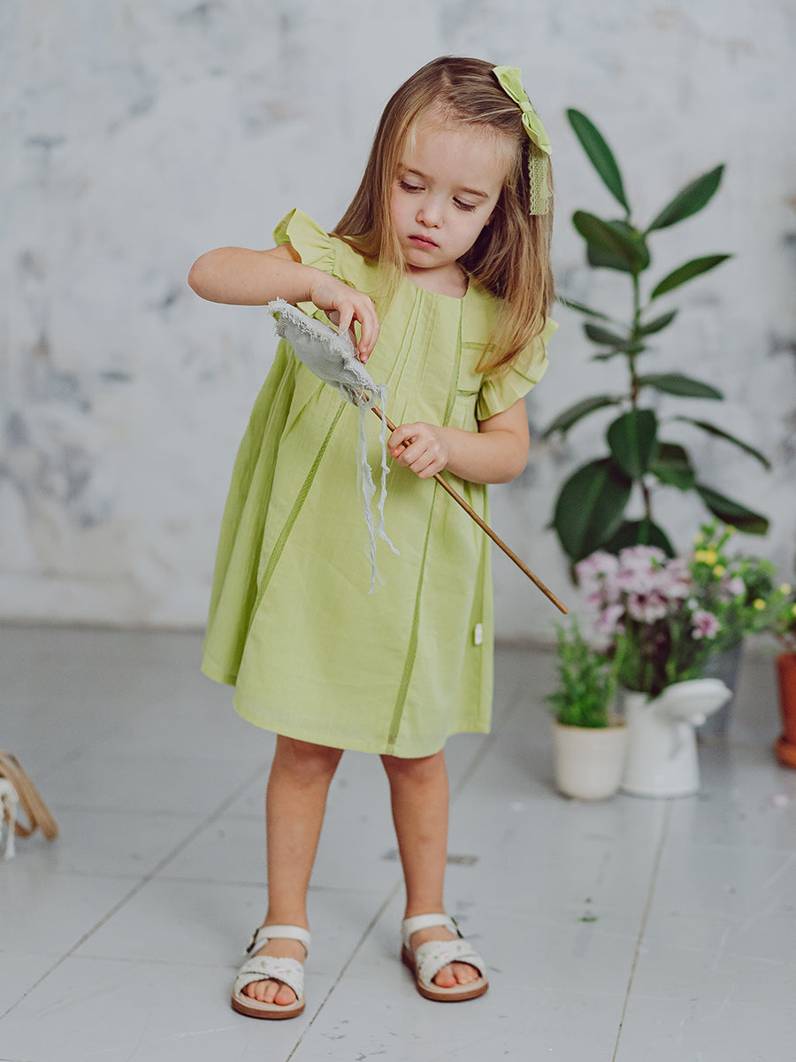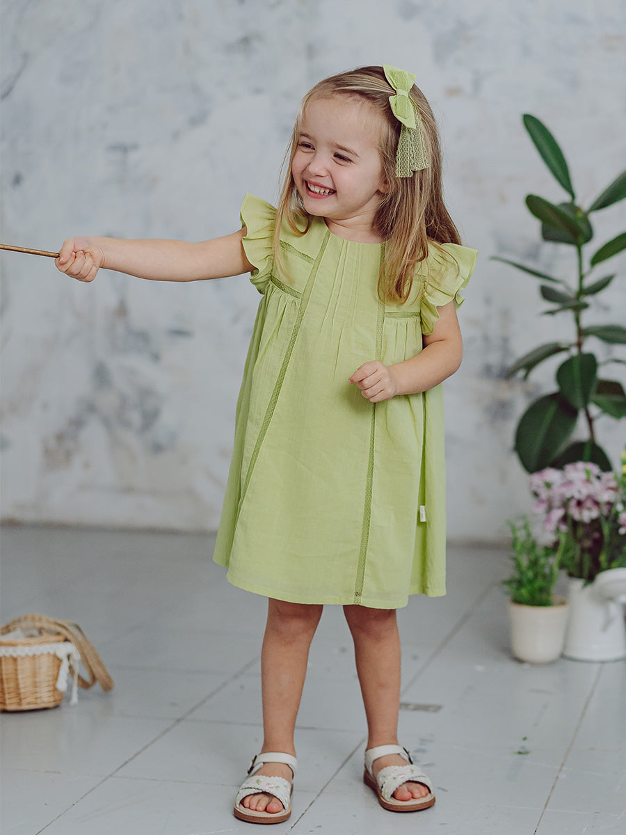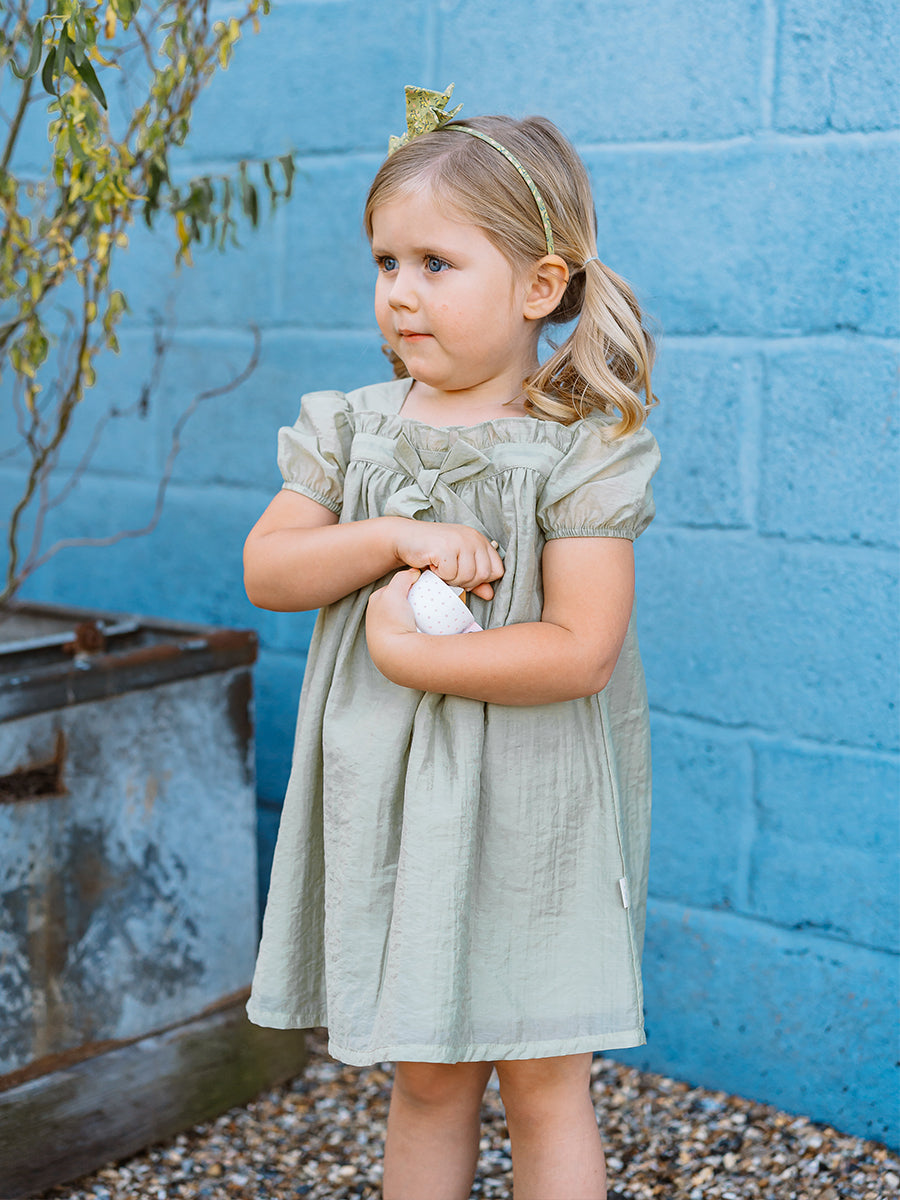 Branly Bow Dress, Tender Green