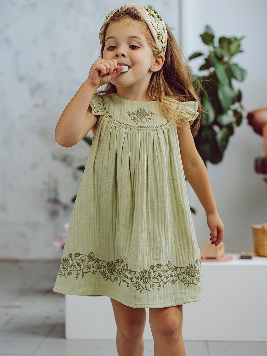 Marrakech Embroidered Dress, Avocado Green