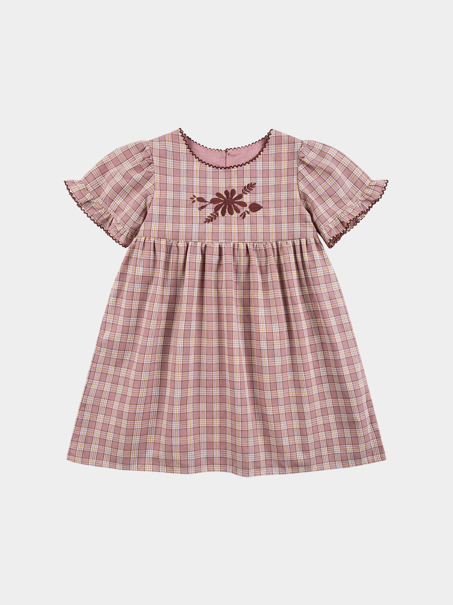 Manchester Embroidery Dress, Pink Plaid