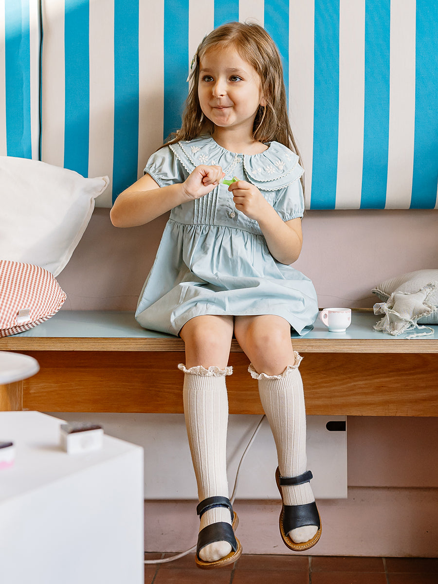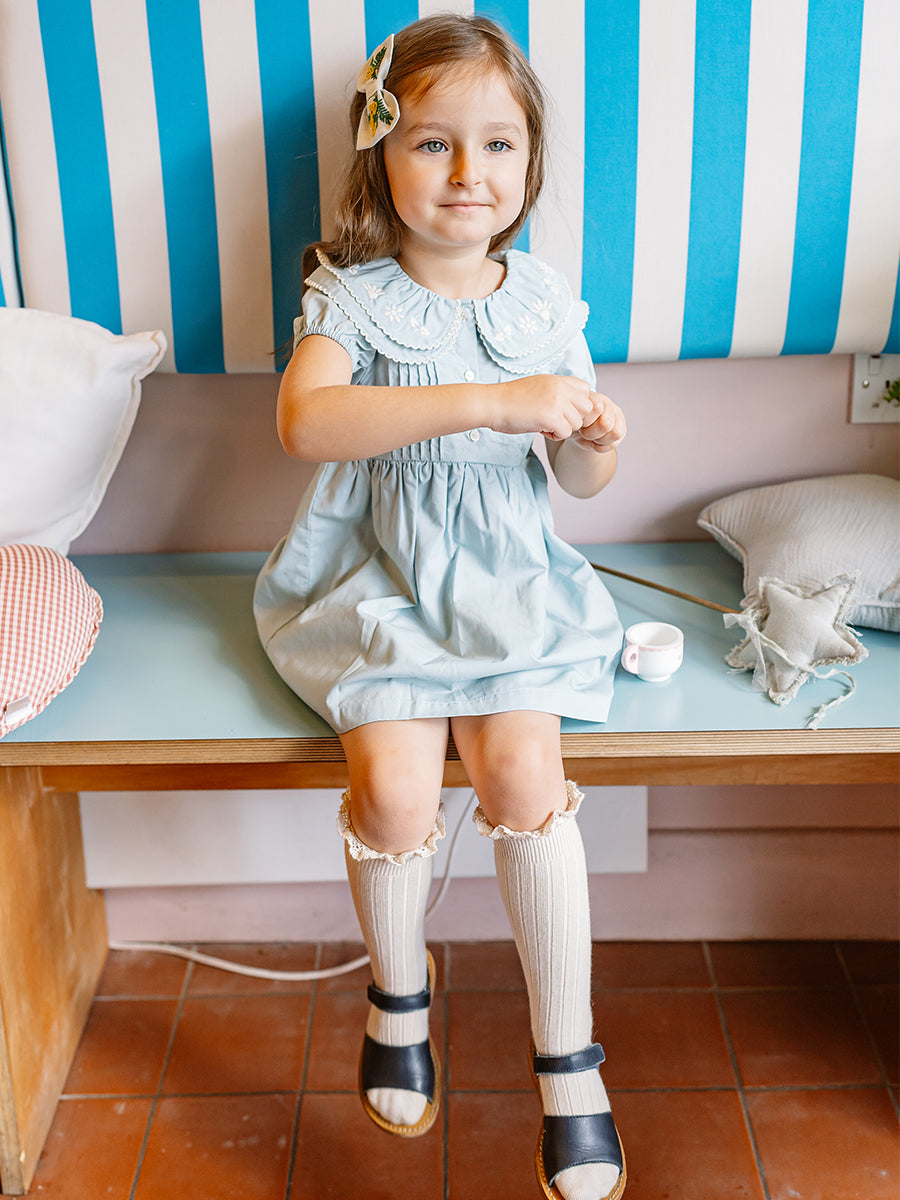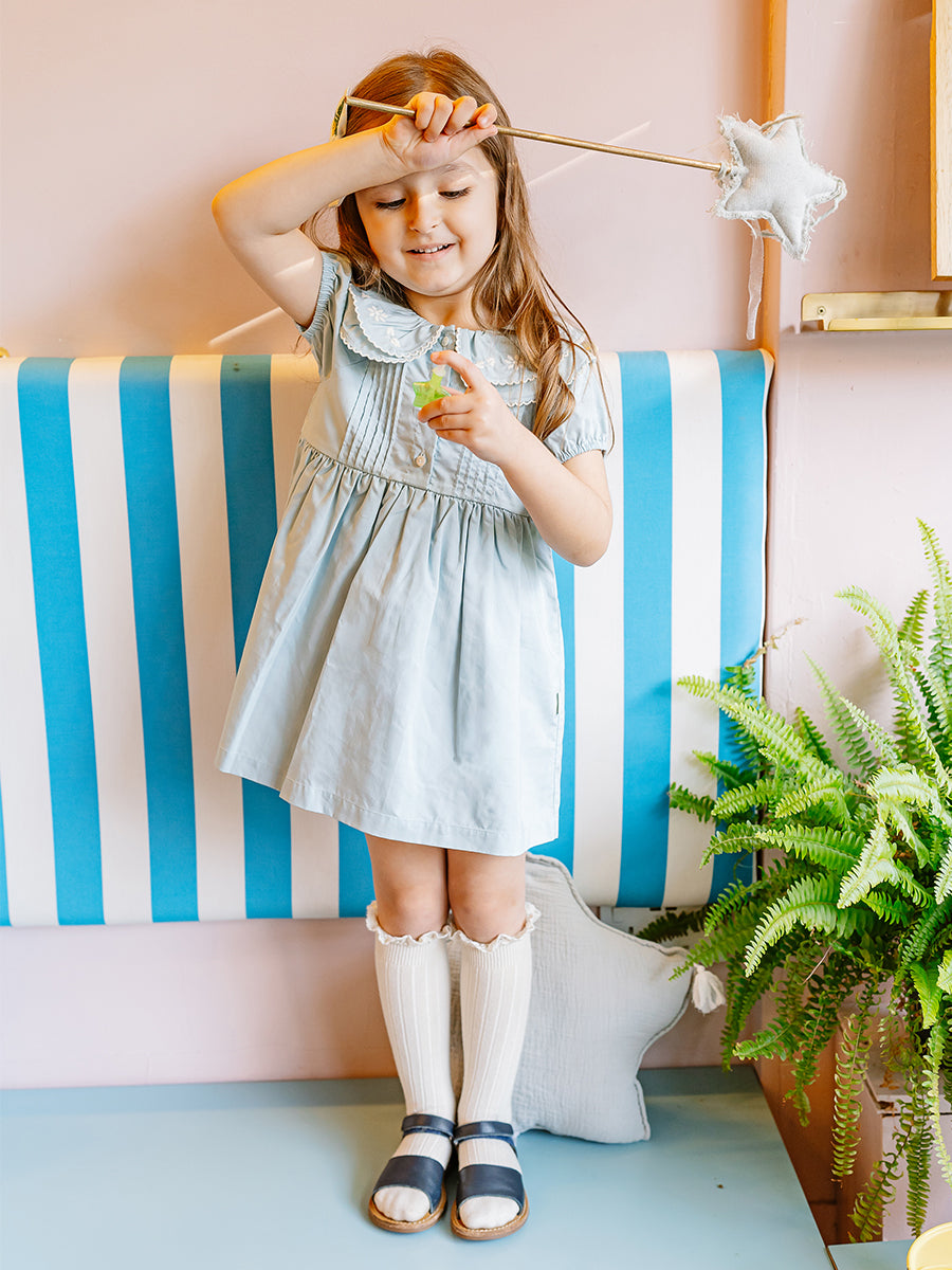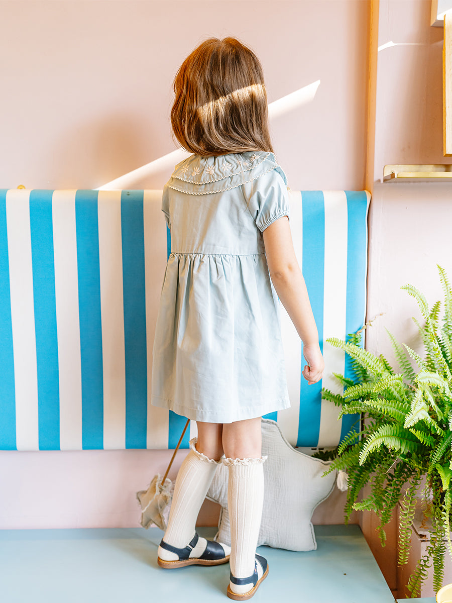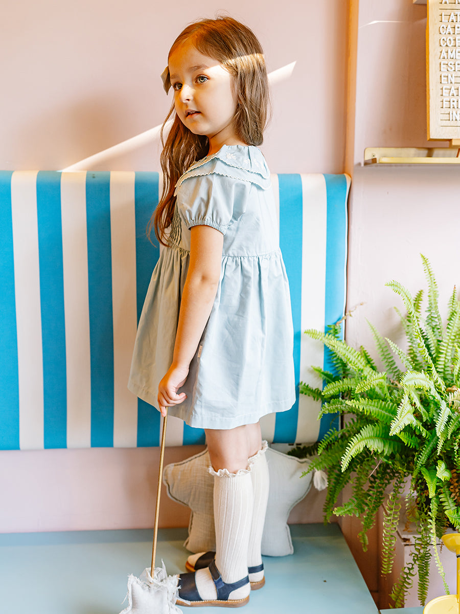 Havana Embroidered Dress, Sky Blue