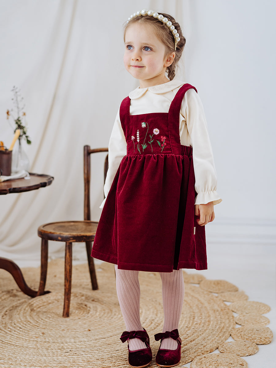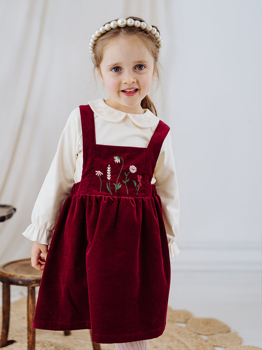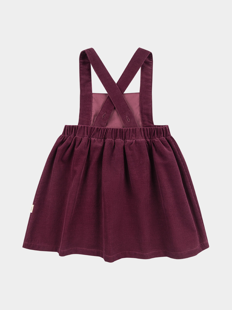 Kalmia Embroidered Corduroy Overall Dress, Wine Red