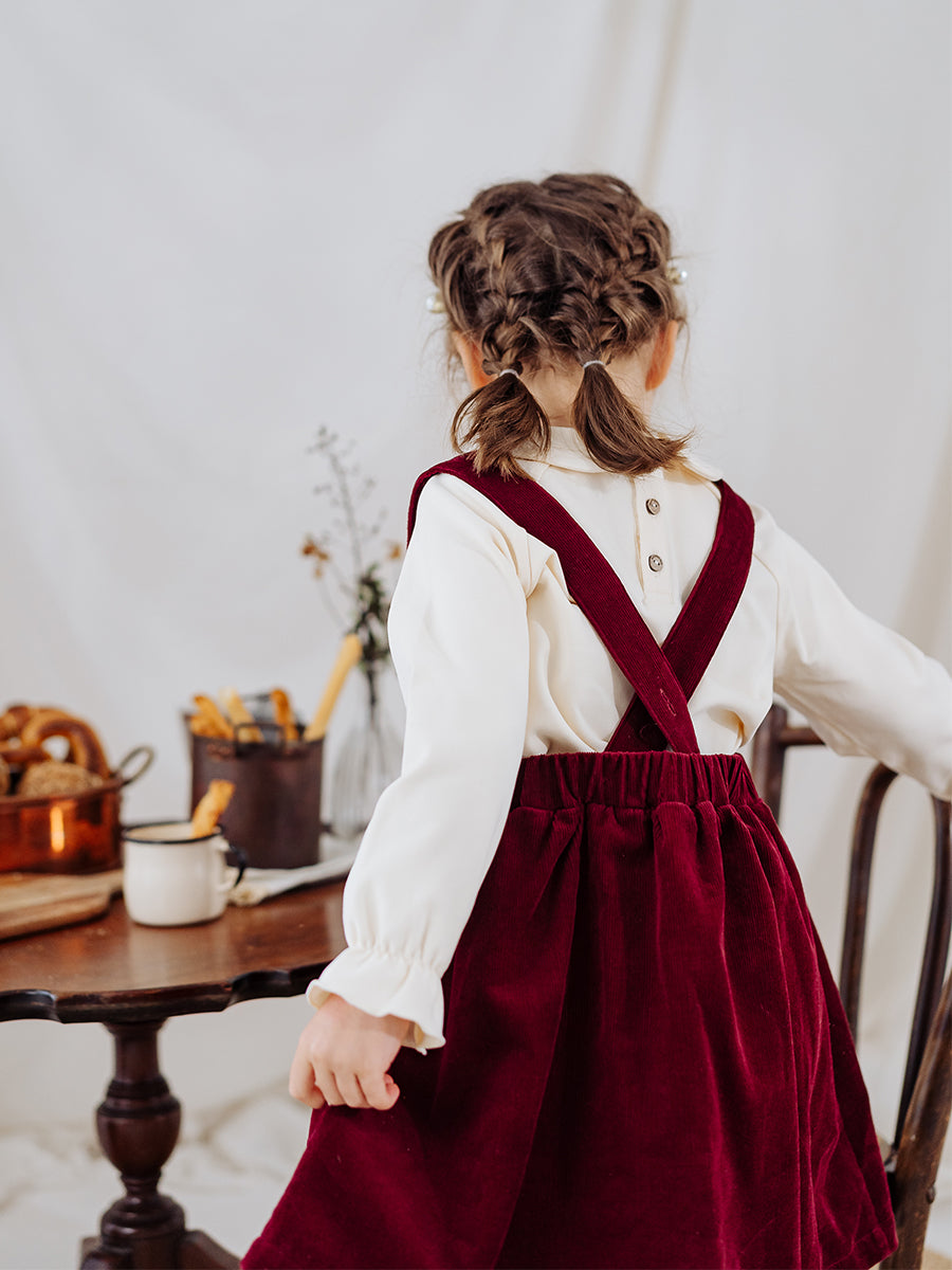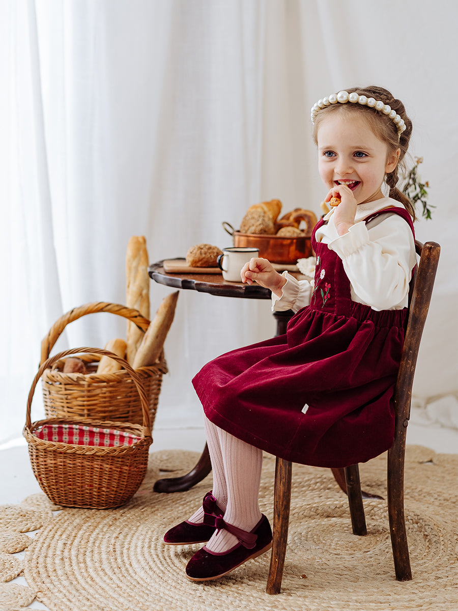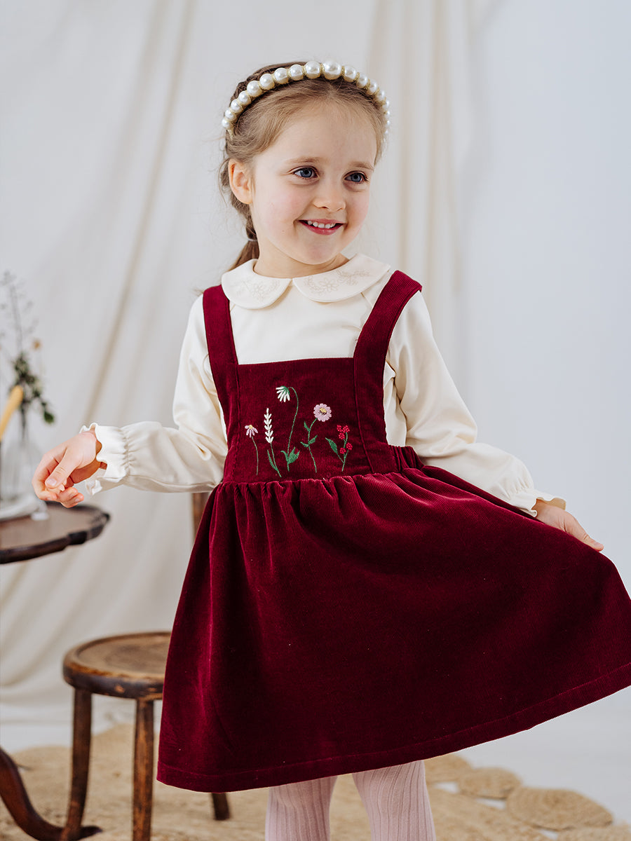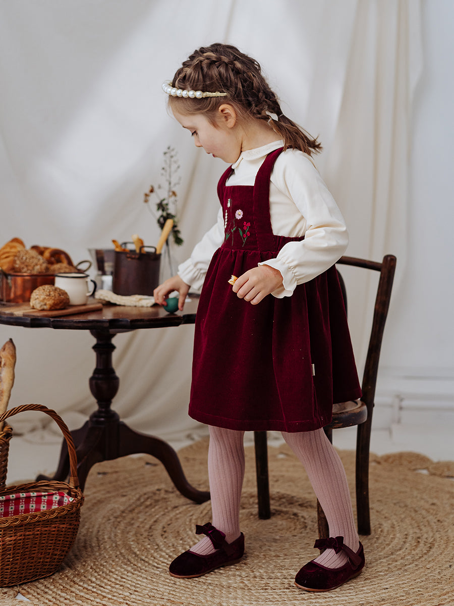 Kalmia Embroidered Corduroy Overall Dress, Wine Red