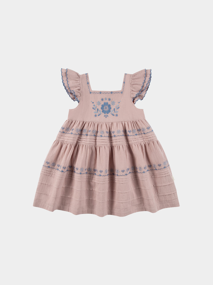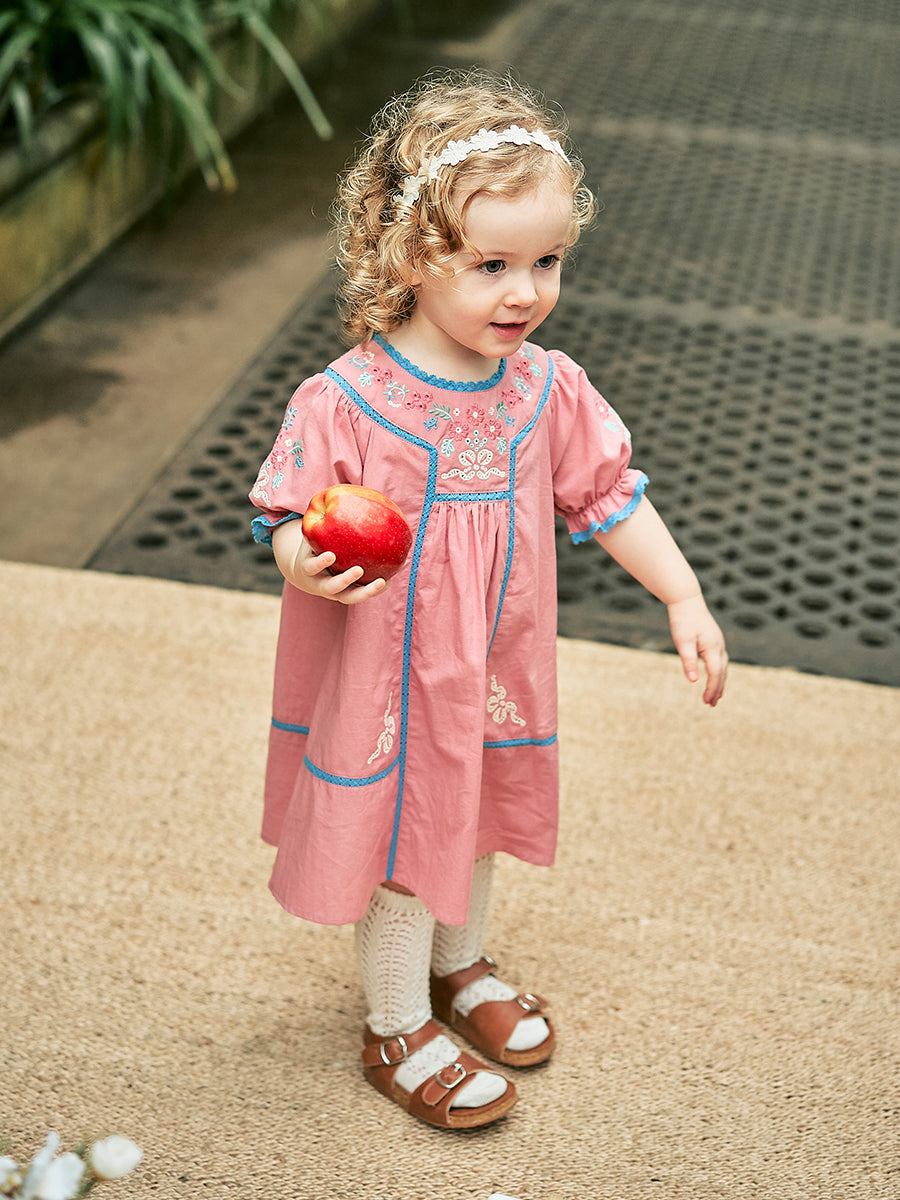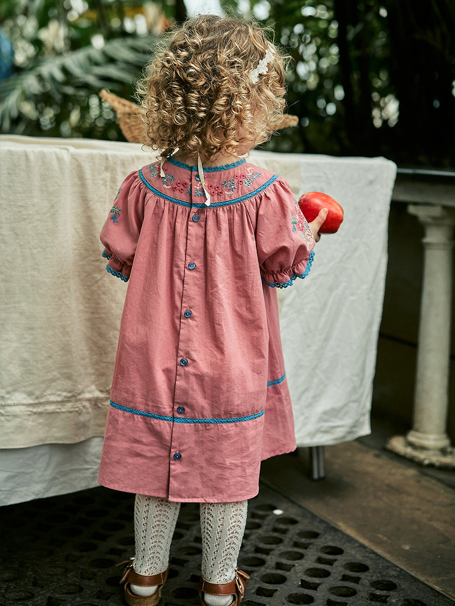Silene Embroidery Dress, Red Bean Pink