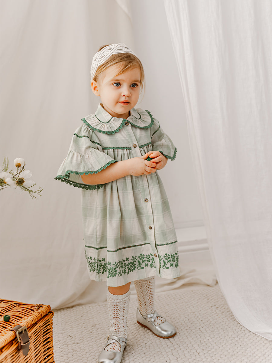 Finsbury Embroidered Dress, Green Check
