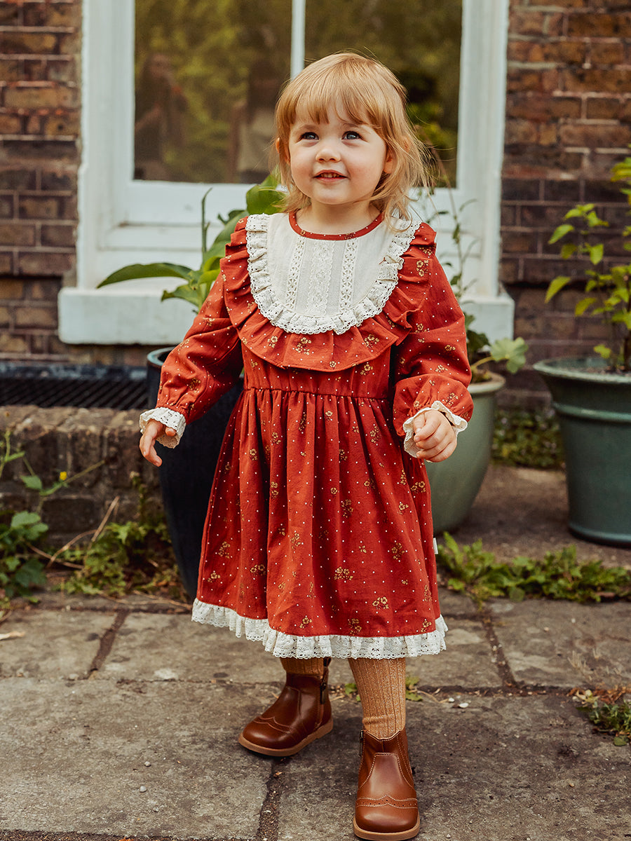 Jacqueline Dress, Wildflower Polka, Burgundy