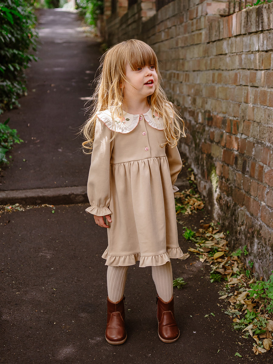 Leila Hand-Embroidered Dress, Almond White