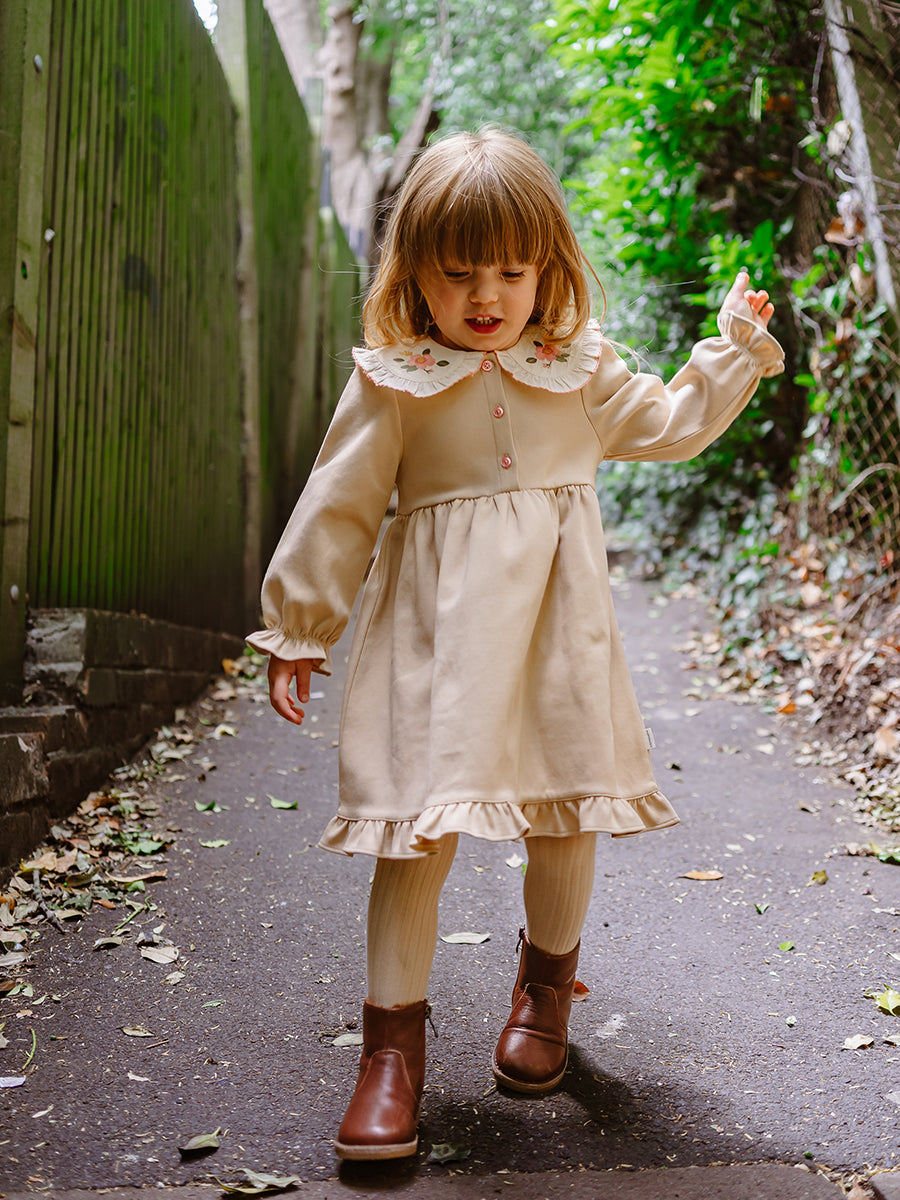Anaya Embroidered Dress, Crème Brulee