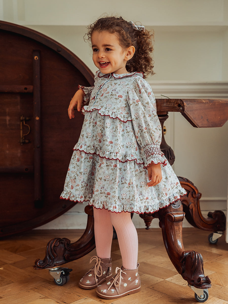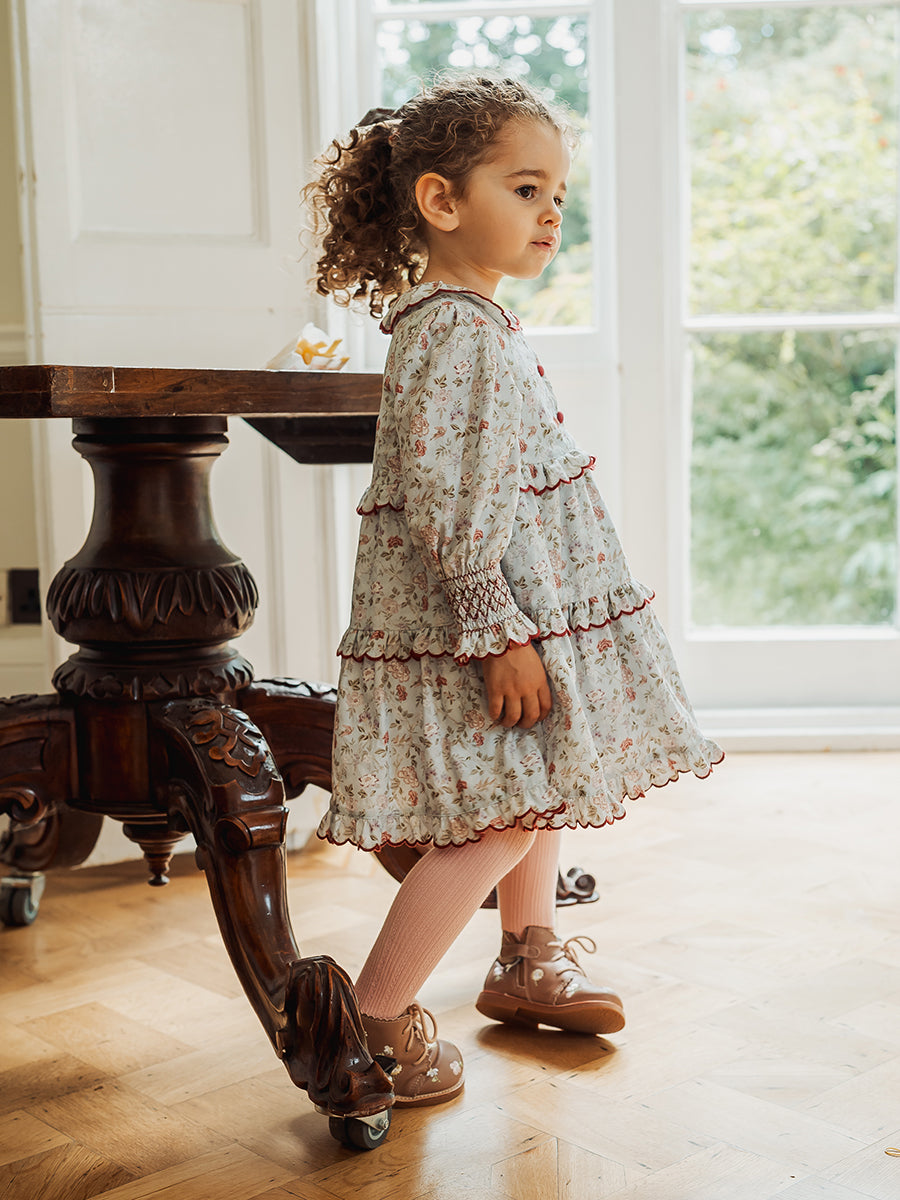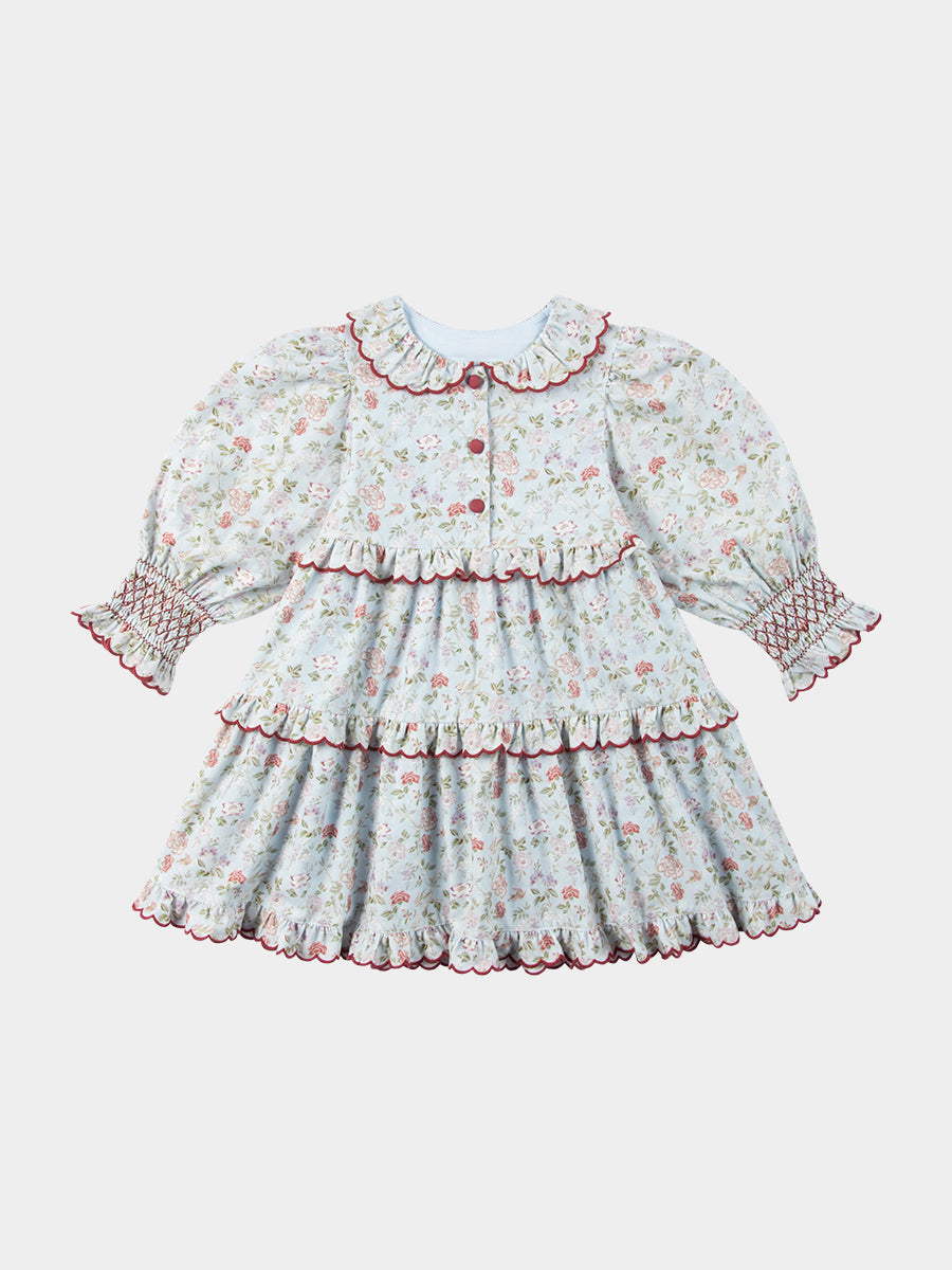 Celine Smocking Dress, Wisteria Garden, Blue