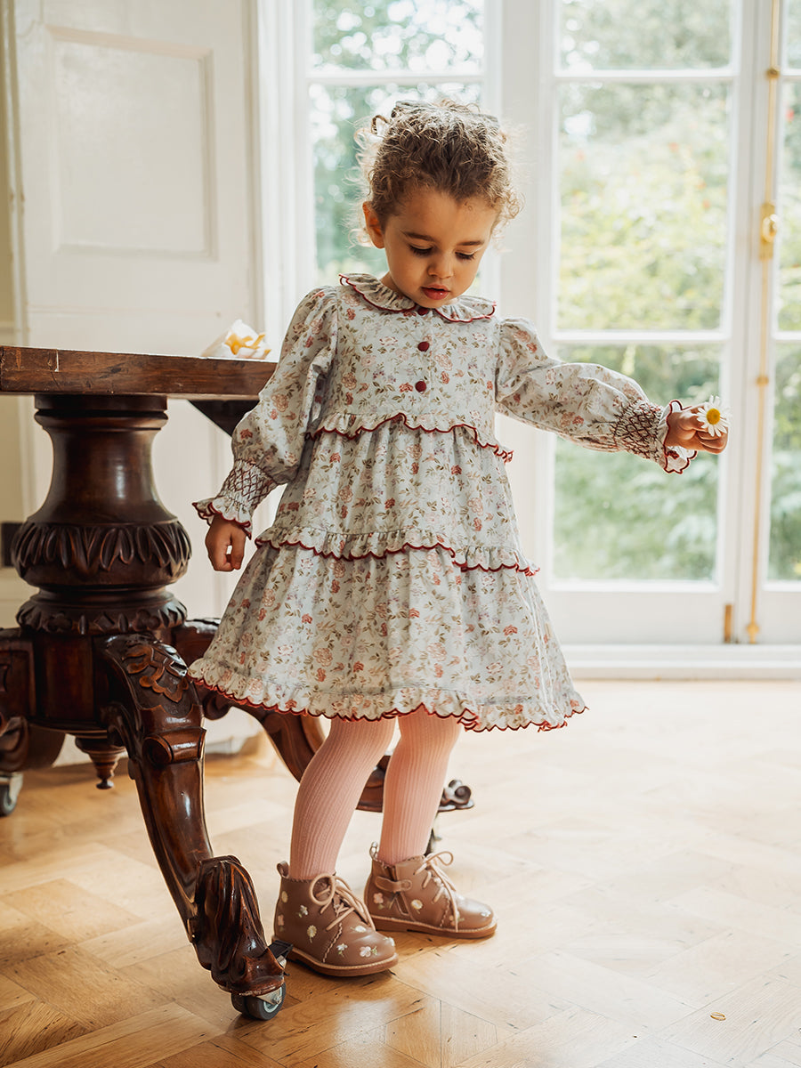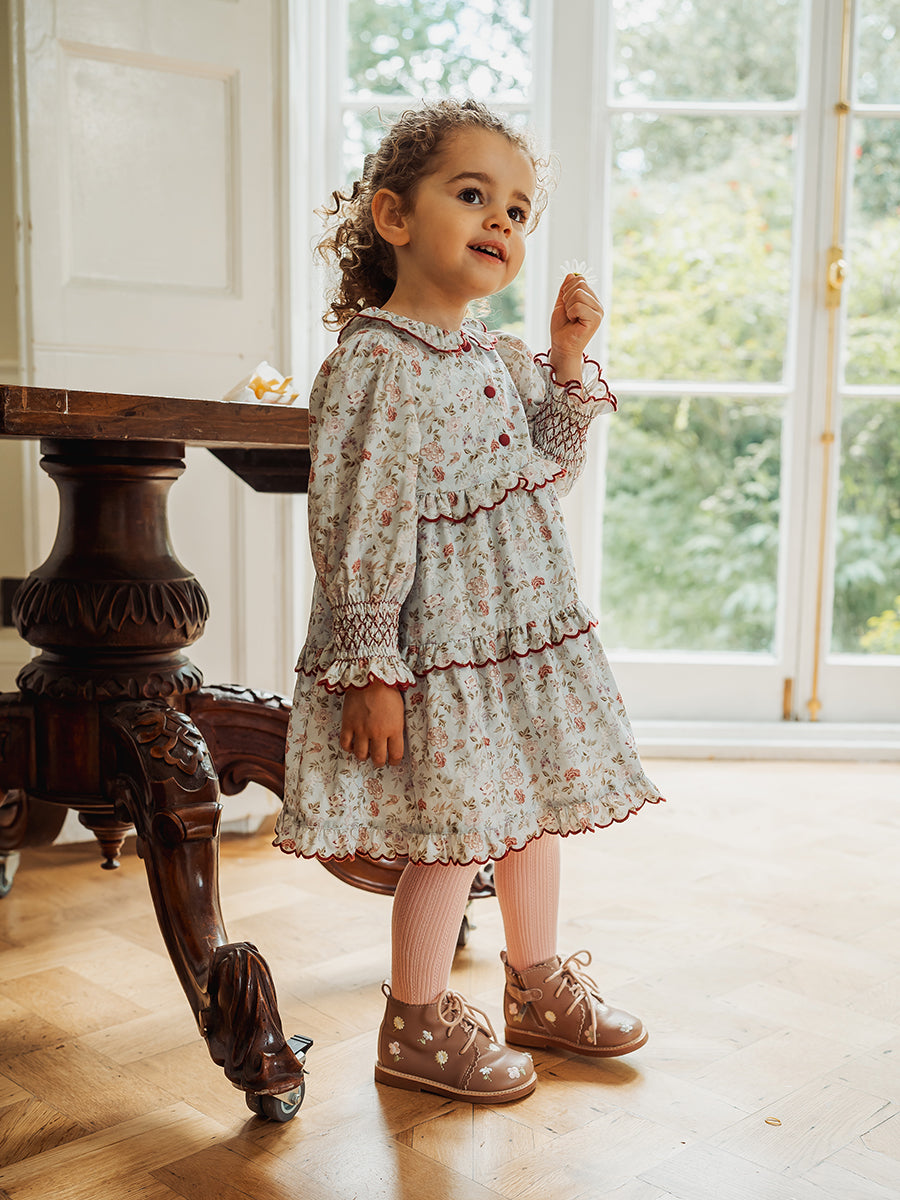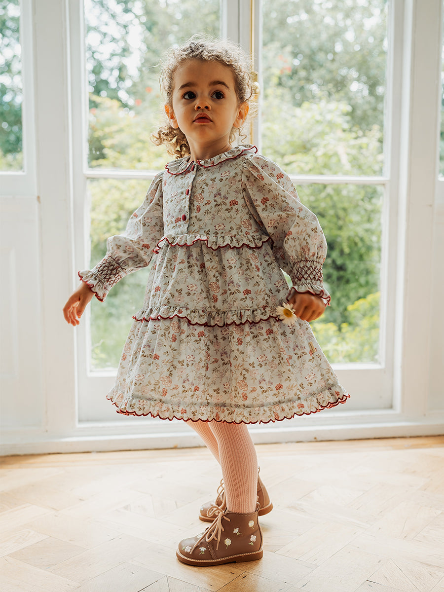 Celine Smocking Dress, Wisteria Garden, Blue