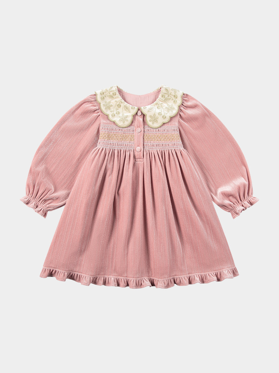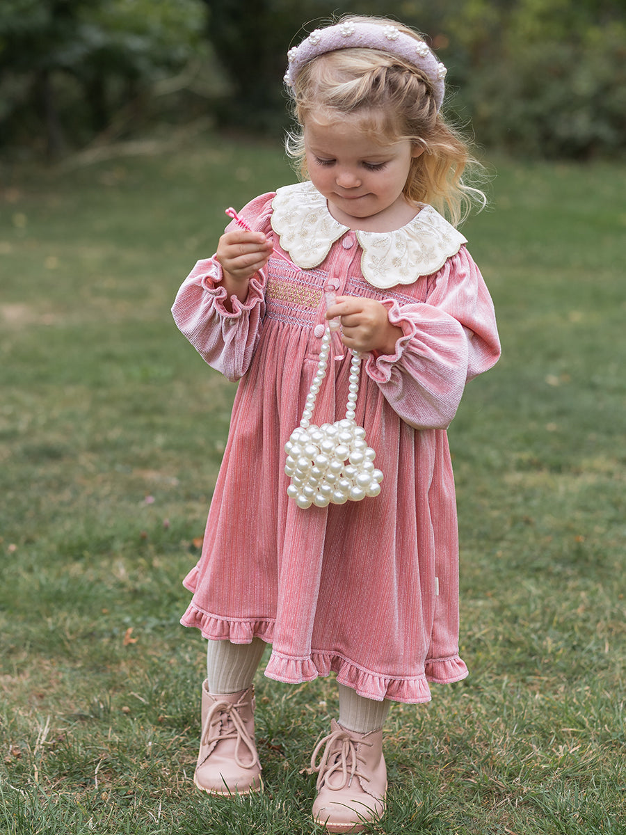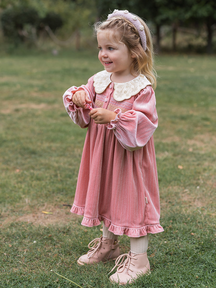Julie Smocking Dress, Velvet Pink